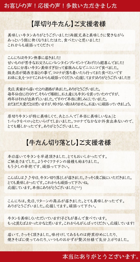 【本日最終日】牛たん厚切り&切り落とし救済プロジェクト!!!多くのご支援感謝します(^^)/