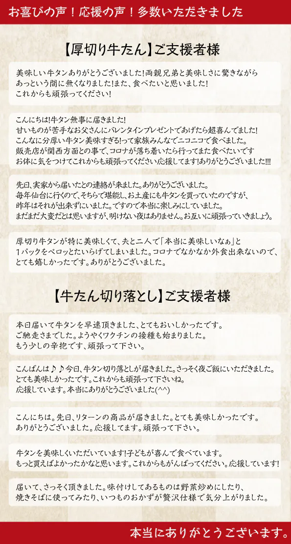 できれば、在庫として残っている牛たん切り落としの消費も助けて頂きたいです。