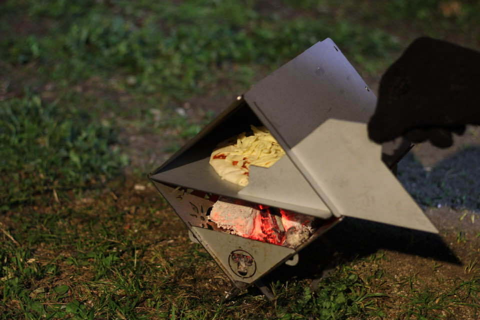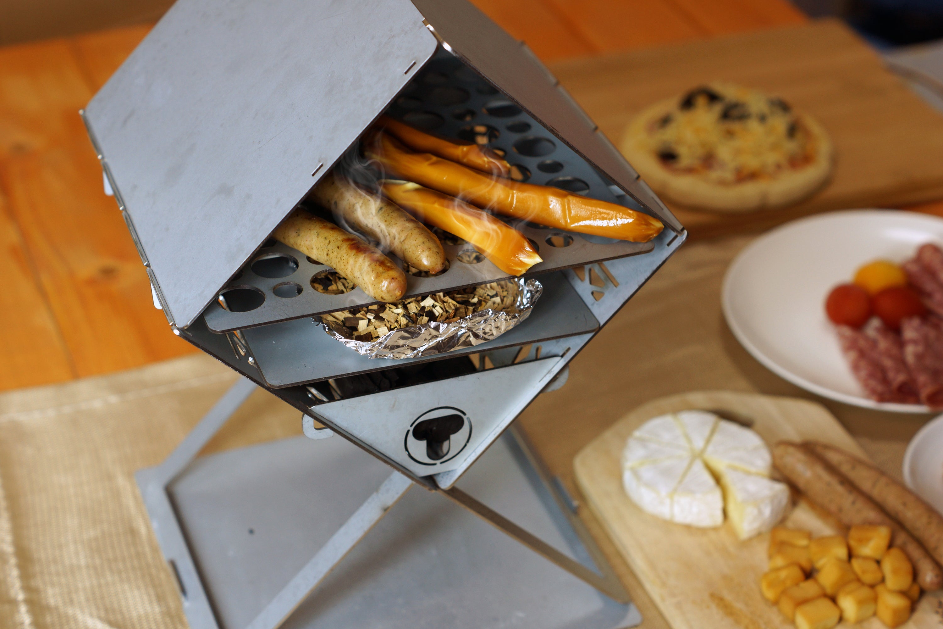 ②スライド式のドアがなくても十分窯の温度は高くピザは焼けるし、熱燻もできる。