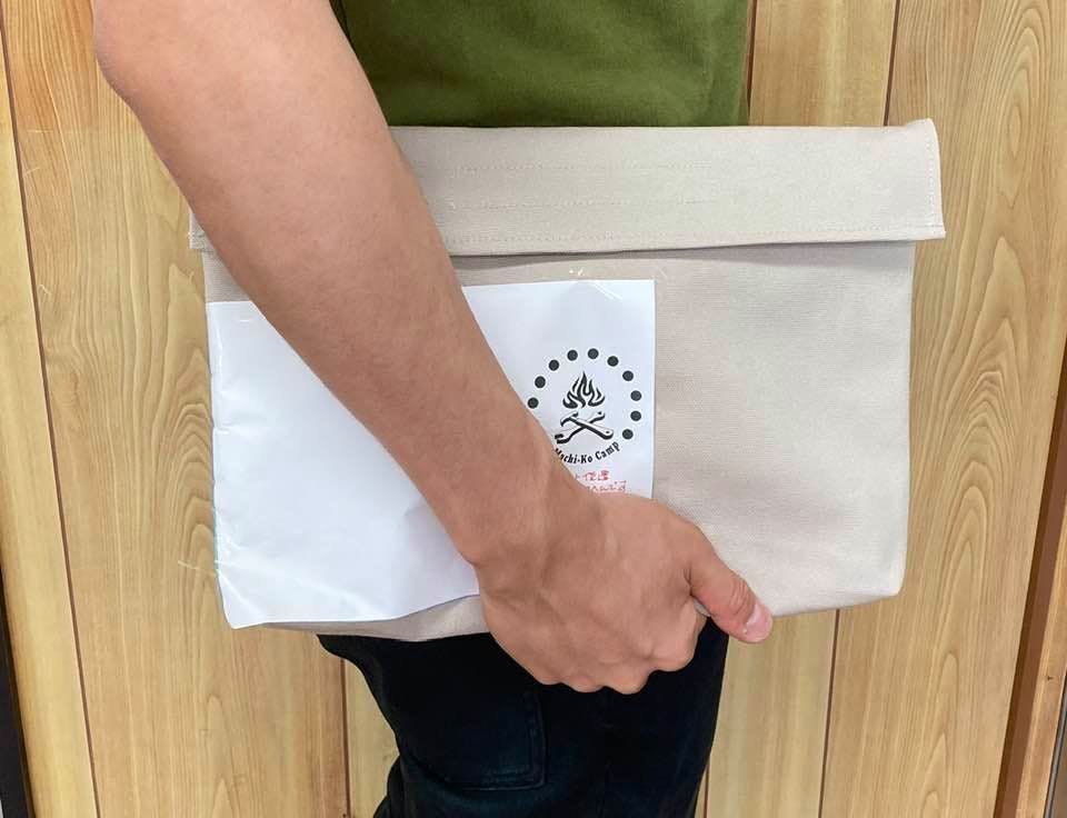 ご支援いただいた方がよりご使用しやすくなったらと、3WAYピザ窯とステンレス焚火台(セット含む)のリターンを選択いただいた方に提供予定でした収納袋ですが、