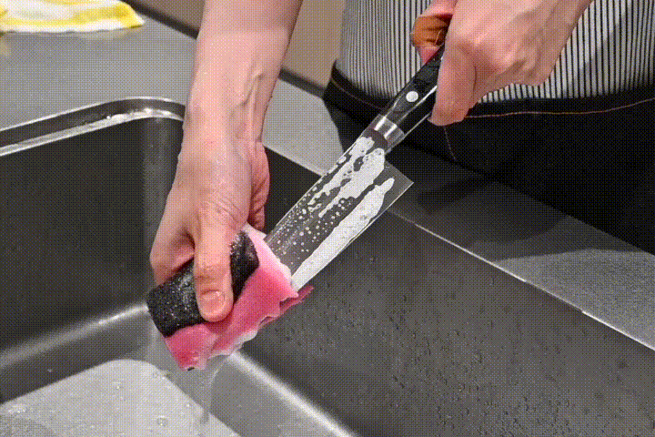 使用後は、食器用洗剤で洗ってサッとふきんで拭いていただくだけで、お手入れしやすく、日常的に包丁を使う女性にも、使い勝手のよい構造になっています。