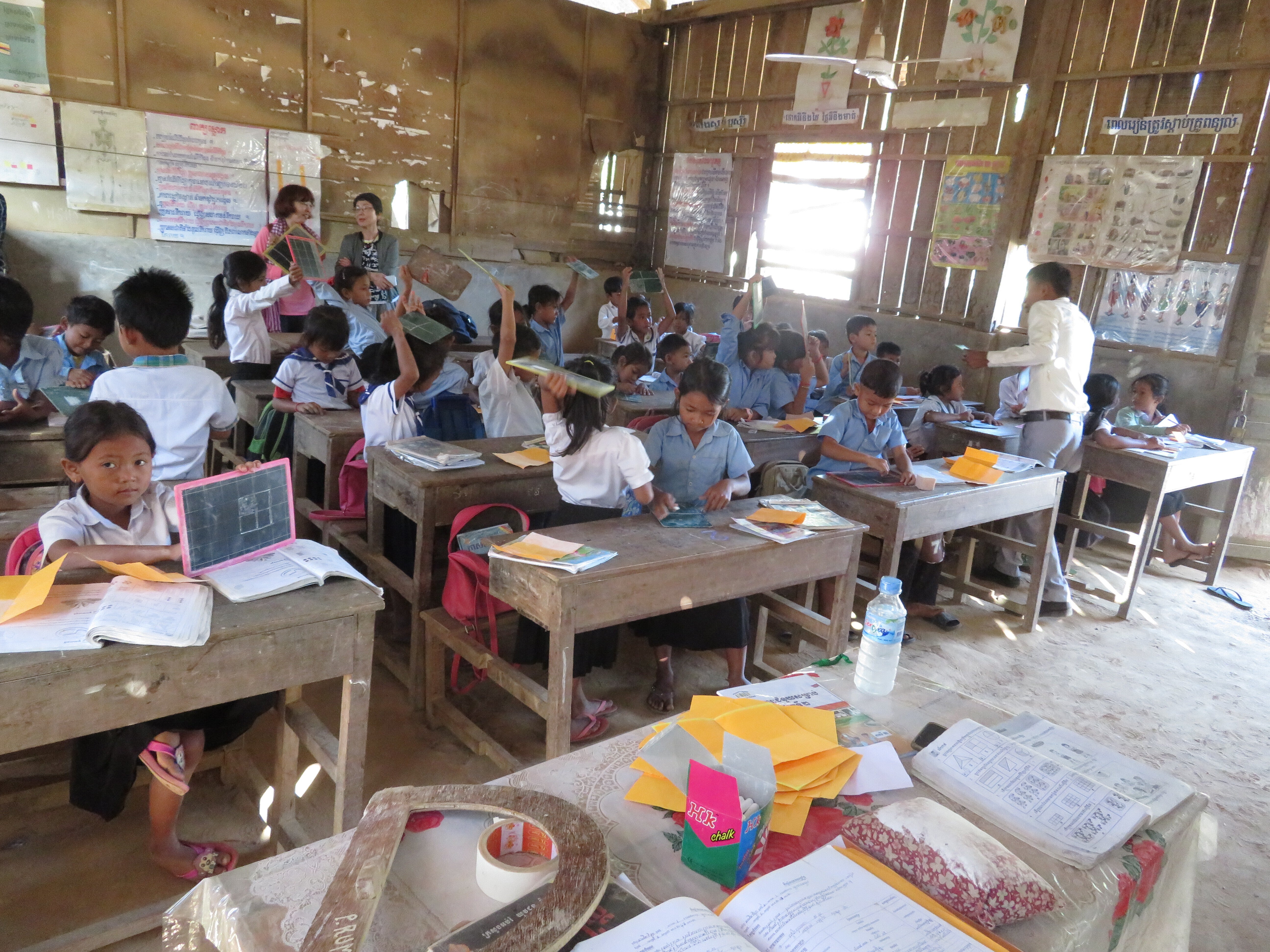 質の高い教育を届けるためには、教材も必要です。カンボジアには絵本や文庫など子ども用の本が少ないこと、教科書も白黒であったり、日本のようなドリルなども十分にはありません。日本から取り寄せようと思っても届くまでに時間がかかり、何より輸送代が大きな悩みでもあります。