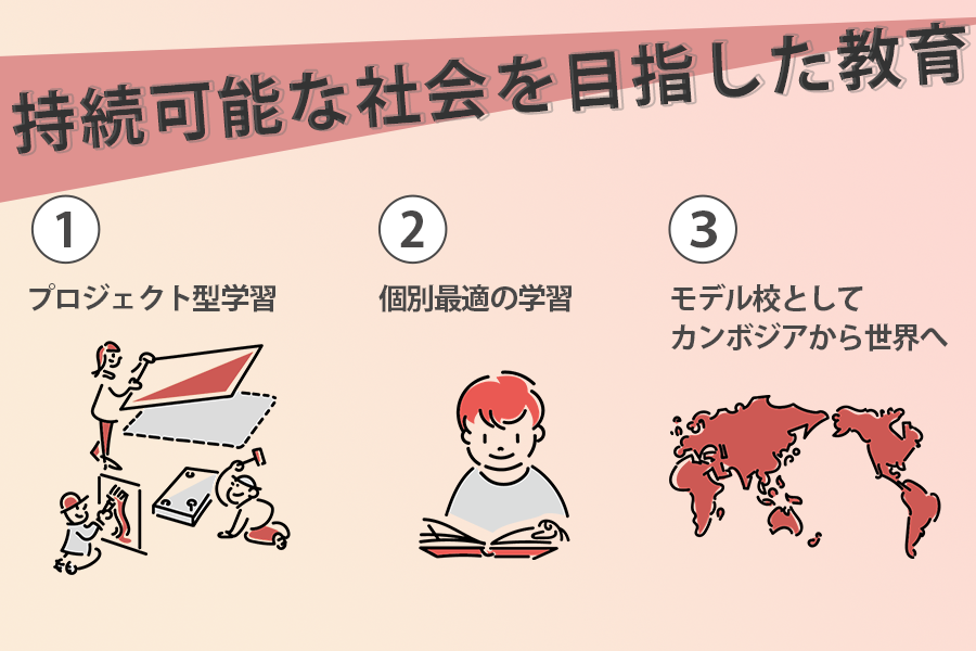 開発途上国であるカンボジアで、その新しい教育の在り方をこの学校で実現し、国内、アセアン、そして世界へ「地球益」(地球上すべてのものにとっていいこと)という考えを広めていくことが私たちのミッションです。