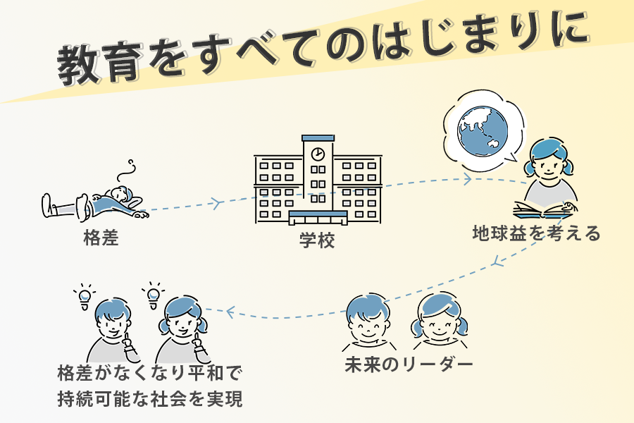 今世界中で目標とされているSDGsのような持続可能な社会をつくるためには、教育こそ改革が必要です。
