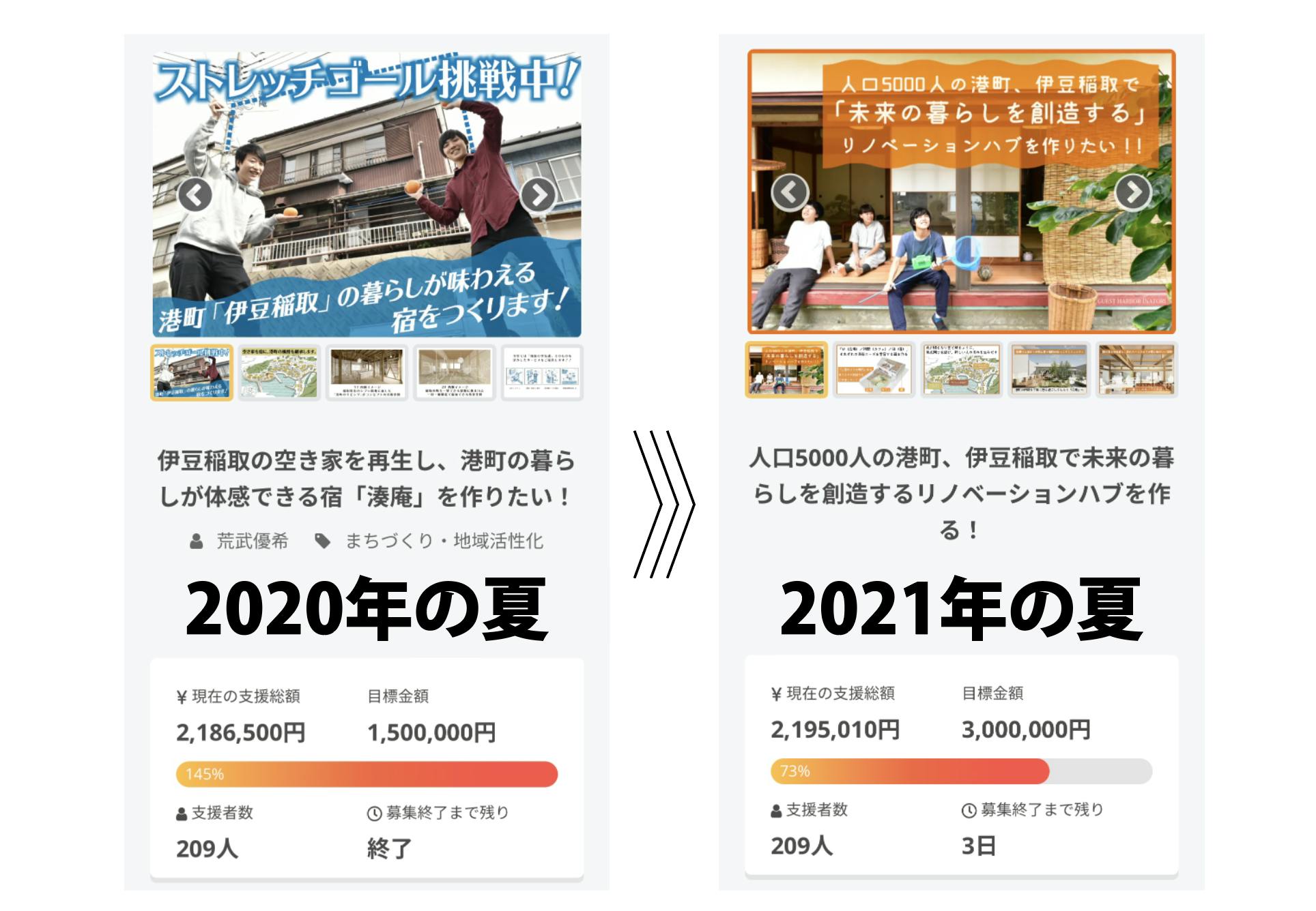 現在、昨年に行った一軒目の宿「錆御納戸」を作るプロジェクトでクラウドファンディングを行ったときと同じ支援者数209人の方の支援を集めています。