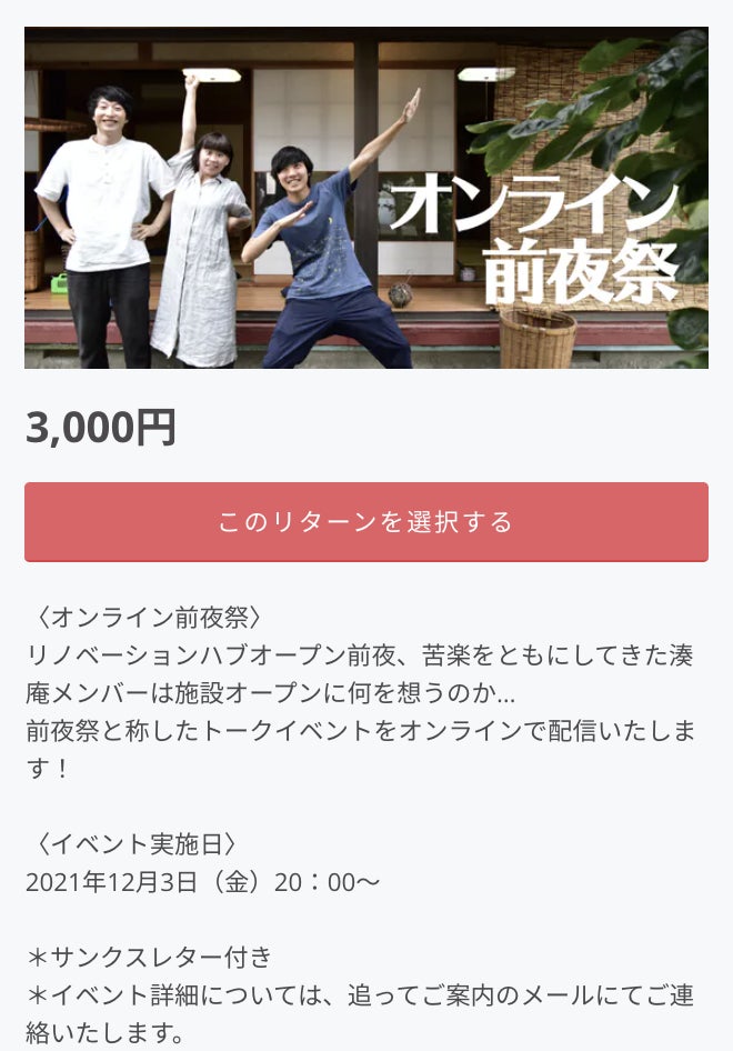 最後のひと押しのご支援にぜひおすすめしたいリターンが「オンライン前夜祭」です!