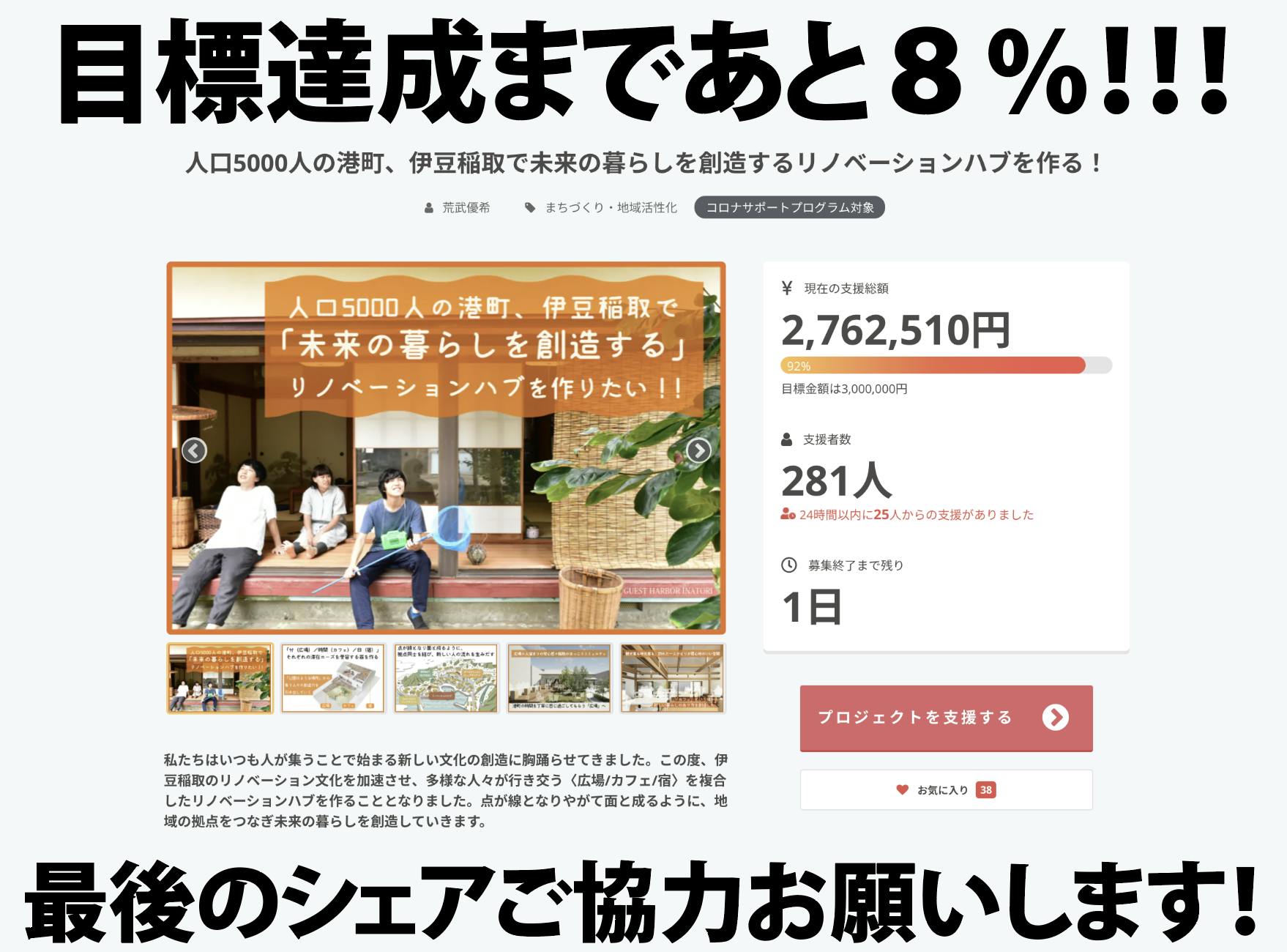 こちらぜひとも最後のもうひと押しにご支援をご検討いただけたら幸いです!!