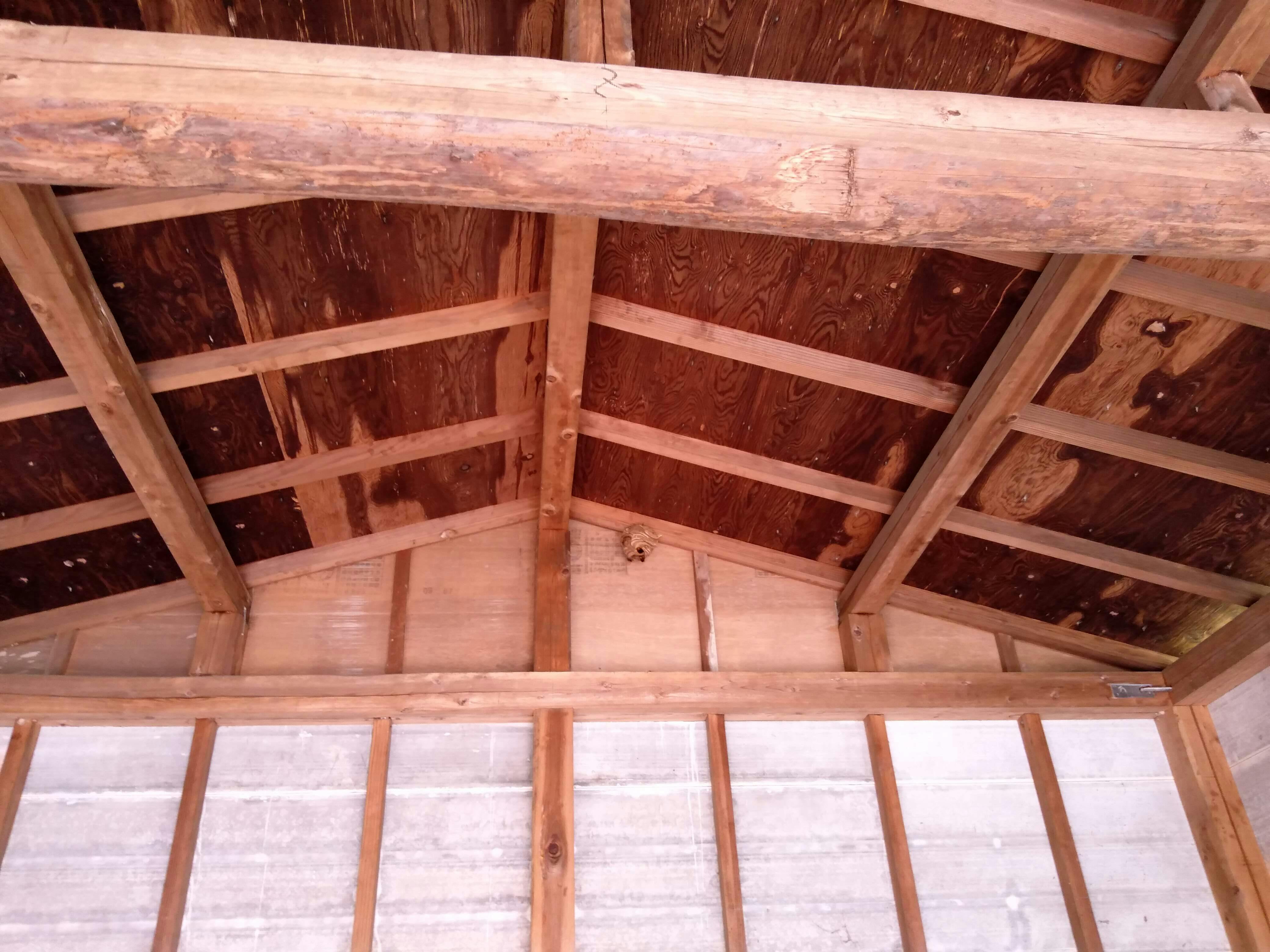 ガレージ内に蜂の巣ができてました。