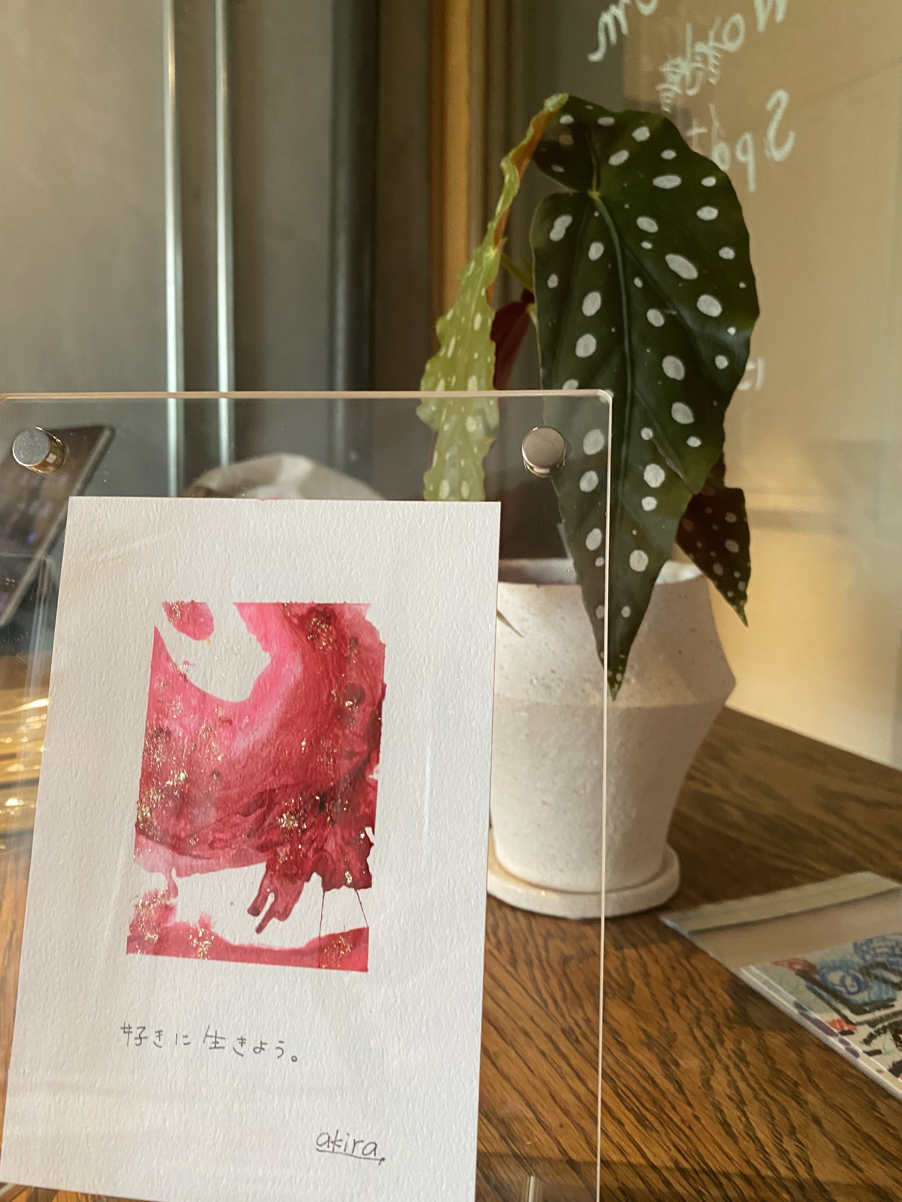 ー上の写真のように、絵にWORDS(言葉)を添えた作品をお贈りします。作品中の言葉は、ご自身でお好きな言葉を決めていただくか、私がランダムな言葉を選んで添えたものをお贈りします。