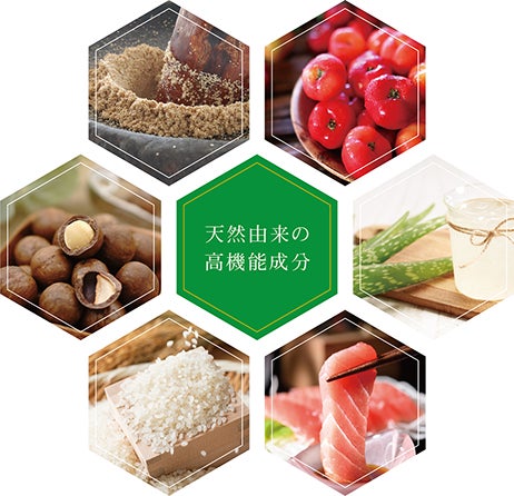 美容液【Re+ serum】には、肌の保湿をサポートして生き生きとさせる成分を厳選して配合しました。 弊社独自の研究により、「ヒト幹細胞」と相性の良い成分と分量を徹底的に追求し、アセロラ果実エキス・アロエベラ葉水などをはじめとした天然由来成分40種類をベースに、高機能成分を配合しています。
