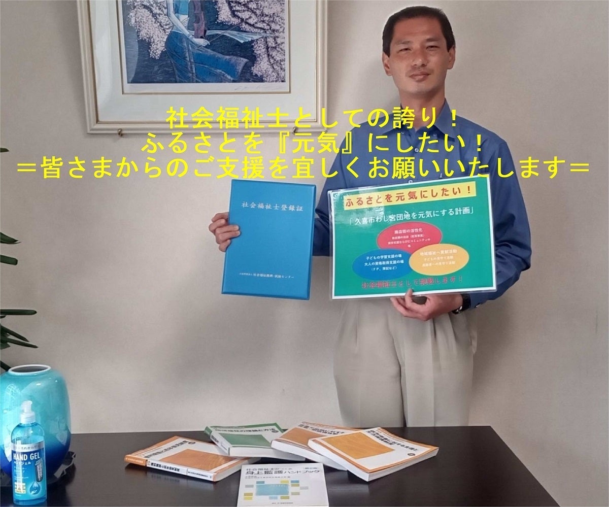 社会福祉士としてふるさとへ社会貢献私は子ども時代は、好き放題遊んでいたように記憶していますが、これは決して当たり前のことではなかったと気づかされました。それは子どもたちを見守る大人が、そして地域が連携して「すごしやすいまち」を築いてくれたおかげであると感じています。このことから、今度は私が「子どもたちが楽しく過ごせるまち」、「子育て世代にやさしいまち」を実現し、ふるさとへの恩返しを通して社会貢献を果たす番であると強く感じています。