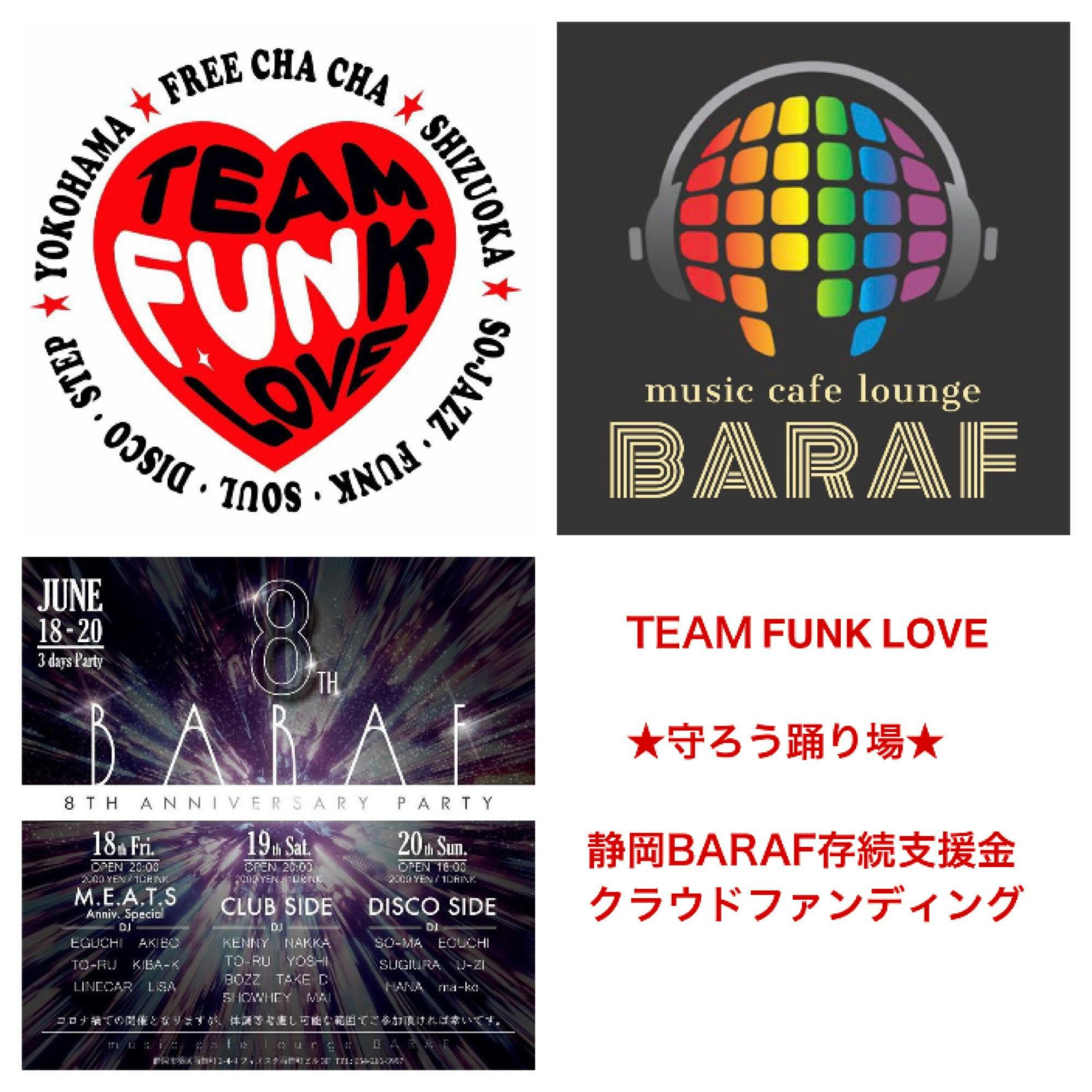 team funk love では、BARAFオーナーの柴くんの承諾をいただき、いつもイベント開催をさせて頂いている静岡BARAFさんの存続支援活動をさせて頂きます!