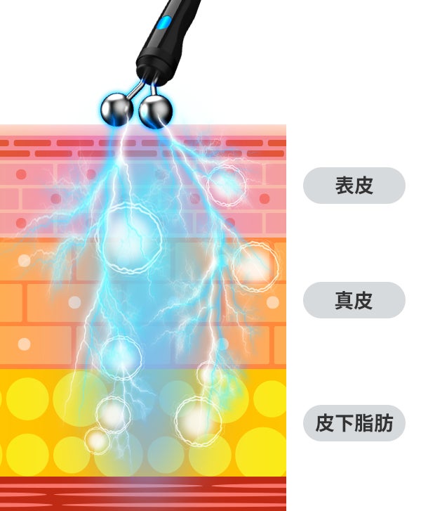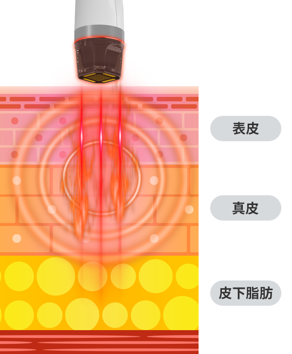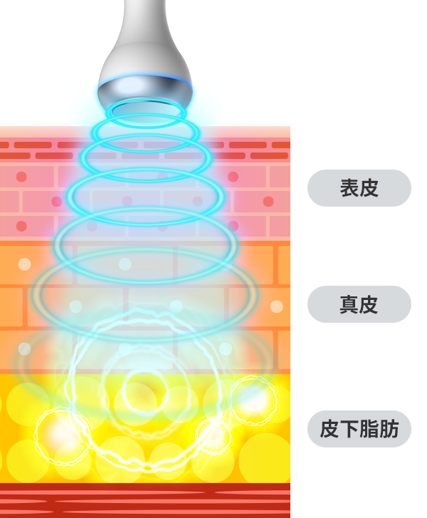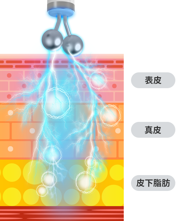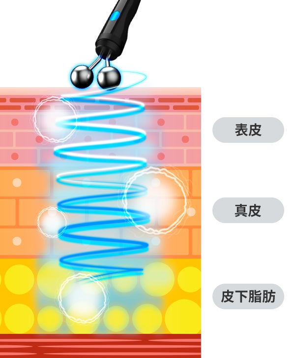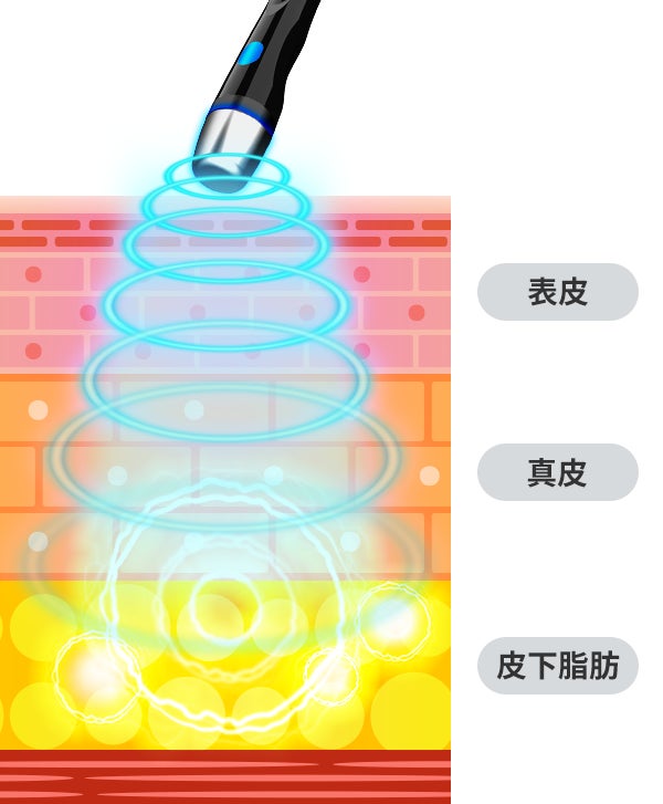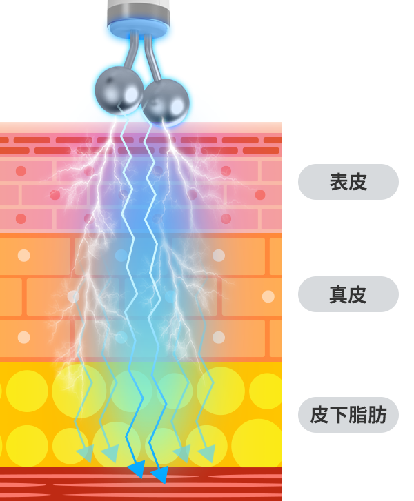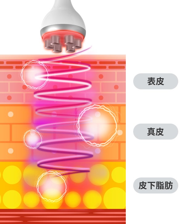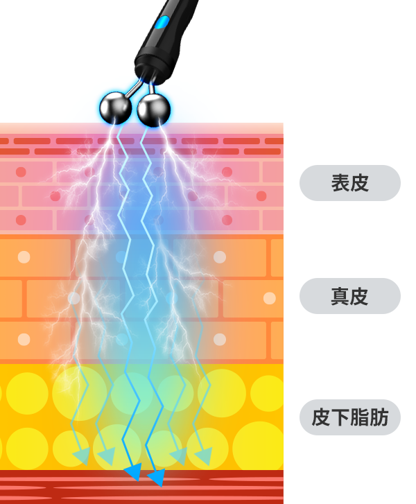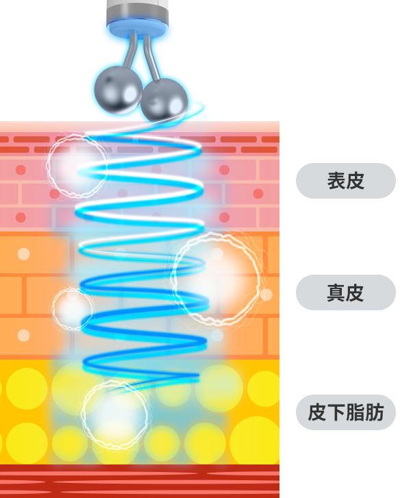 ラジオ波のエネルギーが届き、温めます。2つのハンドピースで同時に行うことで、短時間で効果的に感じることができます。