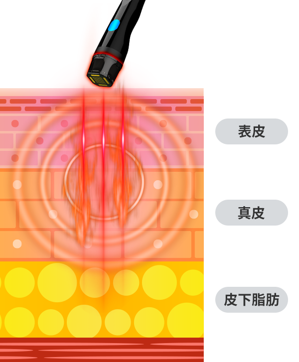 サーマルフラクショナルは細いラジオ波の熱を照射します。メスをつかわないリフトアップと言われるほど人気があります。