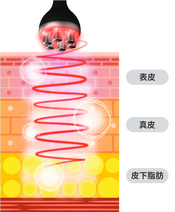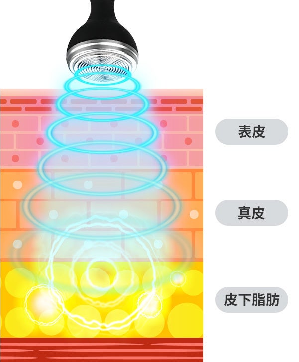高周波の熱でアプローチし、特殊ヘッドによる強力な吸、マッサージ効果もあり、クラッシュ吸引とLEDで「浅い層」「中間層」「深層部」すべてを揉み解すことができます。理想のボディラインを作りましょう。