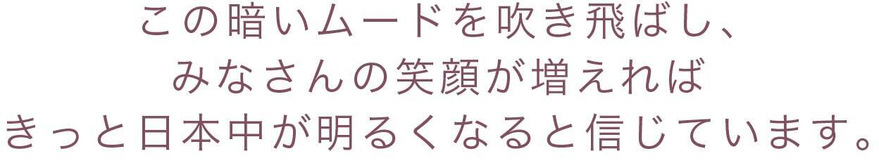 この暗いムードを吹き飛ばし、みなさんの笑顔が増えればきっと日本中が明るくなると信じています。