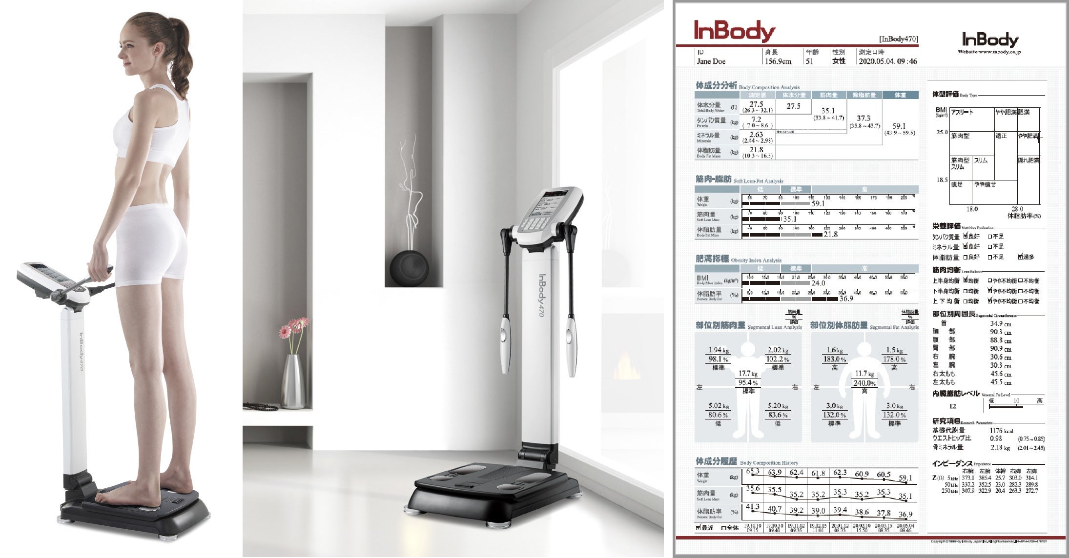 体を構成する基本成分である体水分、タンパク質、ミネラル、体脂肪を定量的に分析し、栄養状態に問題がないか、体がむくんではいないか、バランスよく発達しているかなど、人体成分の過不足を評価する検査です。