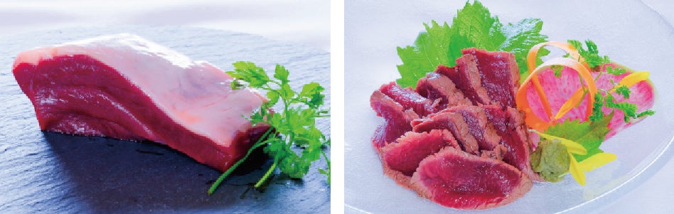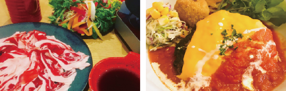 (左)猪肉のしゃぶしゃぶ (右)ジビエ合挽き肉のハンバーグ