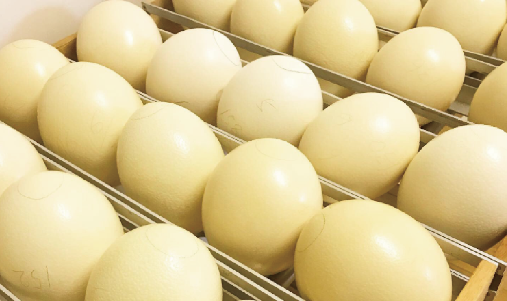 西伊豆のわさびの葉っぱを食べて育った親鳥から産まれたダチョウのヒナが育ち、親鳥になり、また卵を産み落とす。その貴重な命の連鎖を見守り、存続させていこうと心に誓っています。