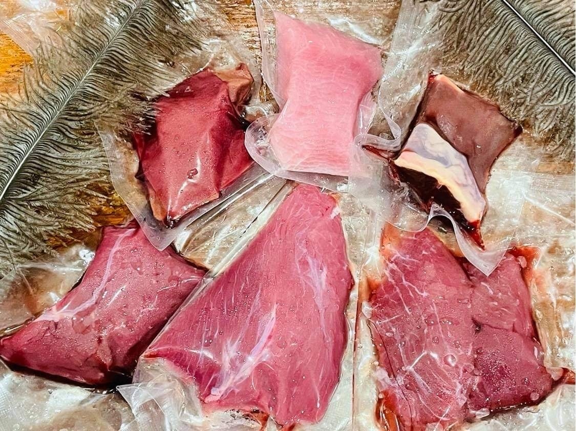 120kgのダチョウから レバーで2kgほど、砂肝・ハツに関しては800gほどしか取れません。