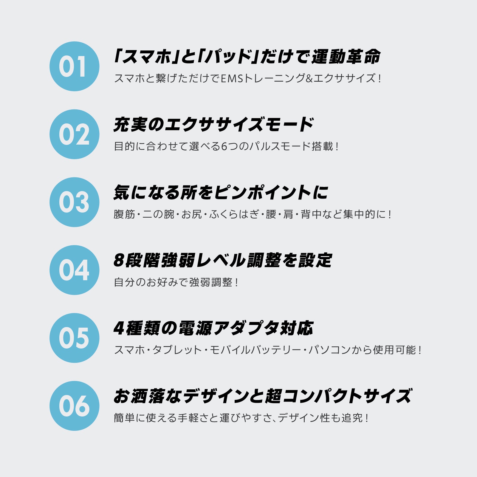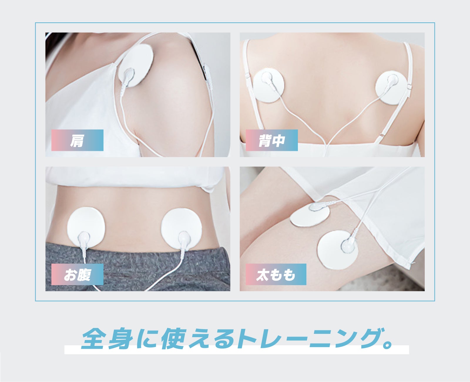 腹筋、二の腕、お尻、太もも、ふくらはぎなど、パッドで集中的にEMSトレーニング&エクササイズ!