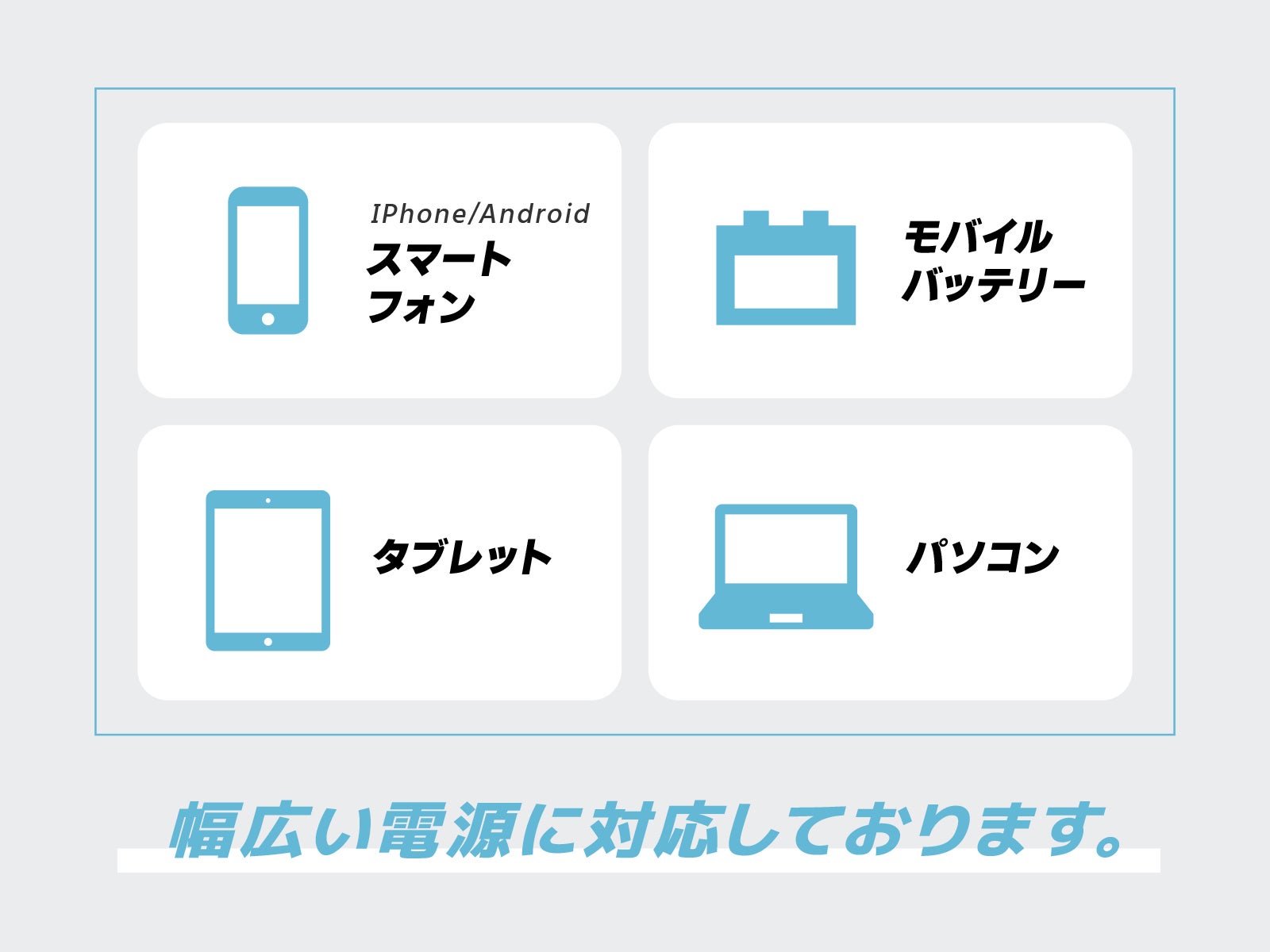 スマホだけではなく、変換アダプタ付属で様々な電子機器に