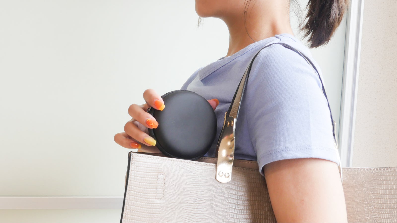 お洒落なマカロン型のポーチに収納されているので、カバンやポーチ入れて