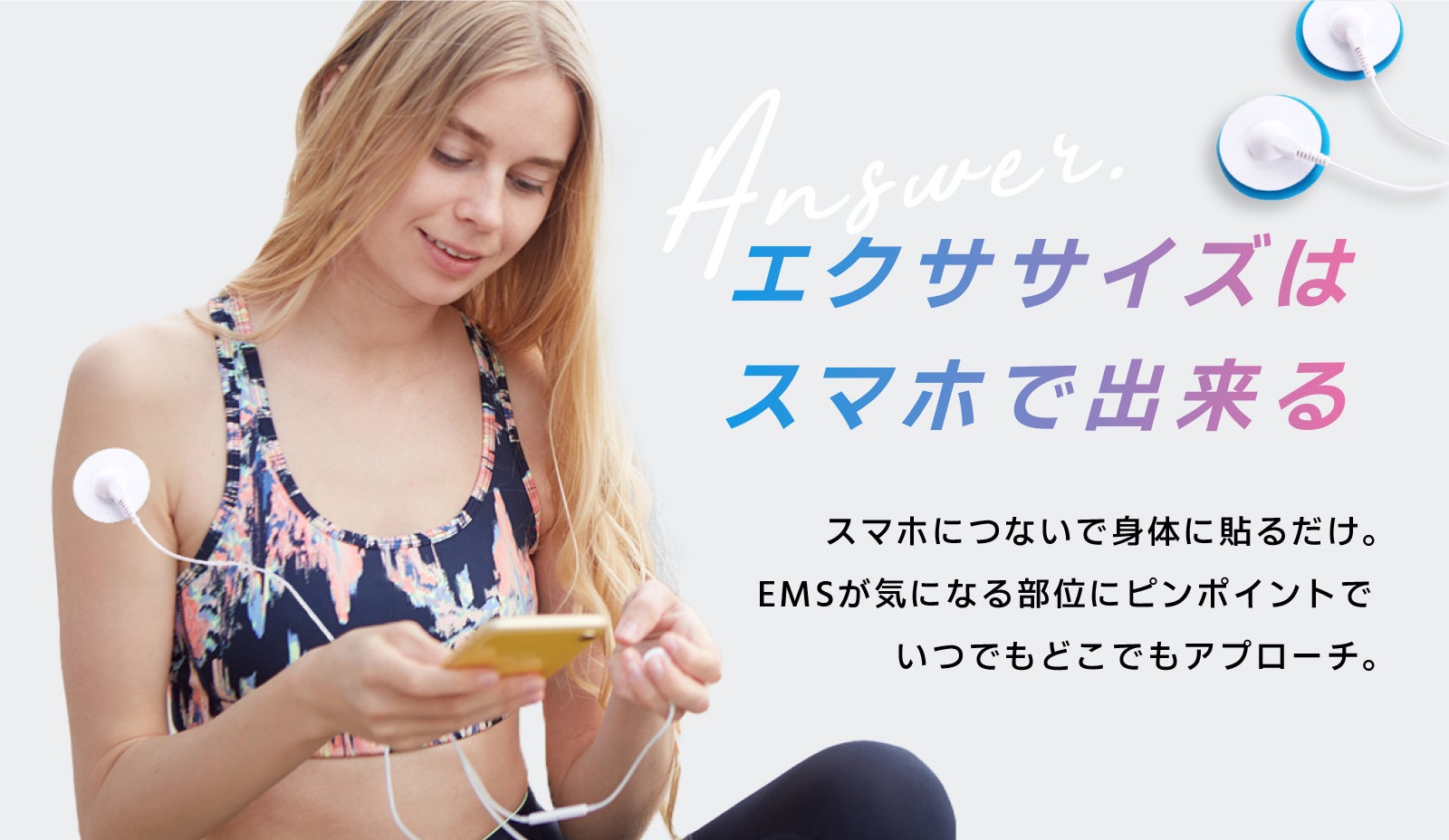 EMSとは 「Electrical Muscle Stimulation」の頭文字を使用した言葉で、 身体に微弱な電流を流すことで筋肉の収縮を促し、運動効果を得ることを目的とした家庭用の健康機器です。