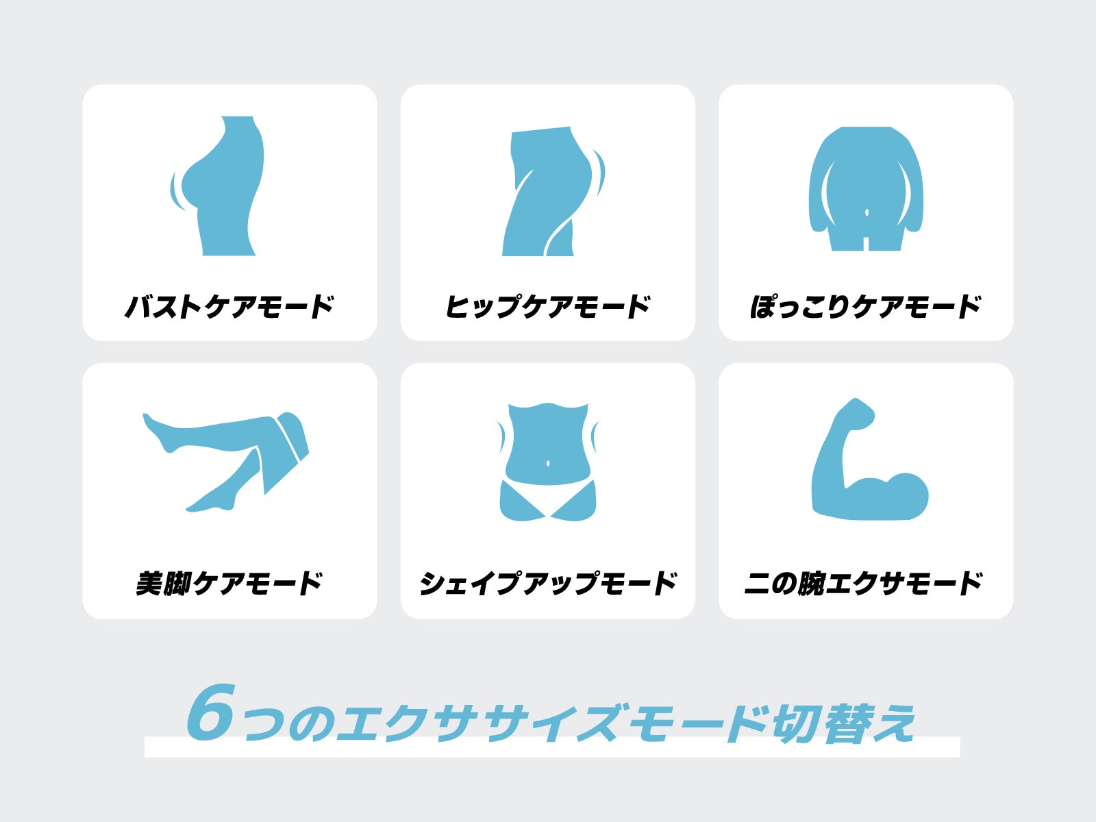 目的に合わせて選べる6種類のパルスモードを搭載しました。集中的にケアしたい部位をしっかりエクササイズできます。30分で自動OFF機能も搭載しておりますので、安心してご利用いただけます。