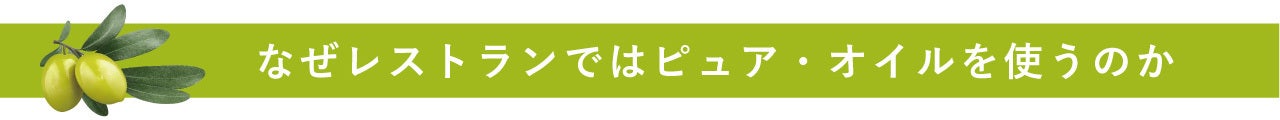 ピュアオイルは、イタリア料理だけでなく、和・洋・中華料理、様々な料理にお使いになれます。揚げ物などには特にお勧め。一般的なサラダオイルと比べ、トンカツ、コロッケなどの揚げ物はからっと揚がり、油の切れがよく、ヘルシーです。是非お試しいただけたらと思います。