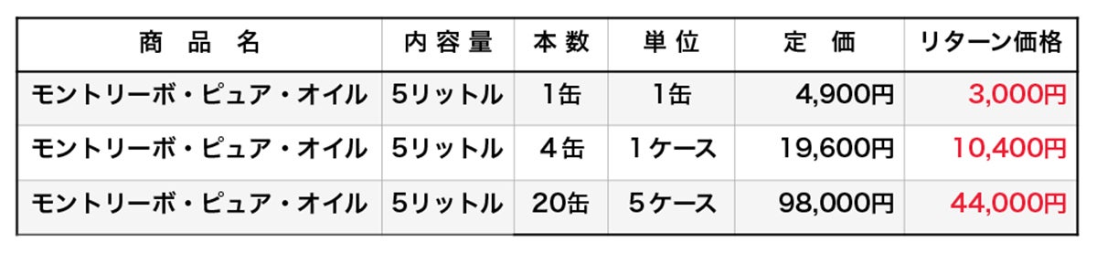 イタリア・カラペッリ社製モントリーボ業務用ピュアオイル5L缶。