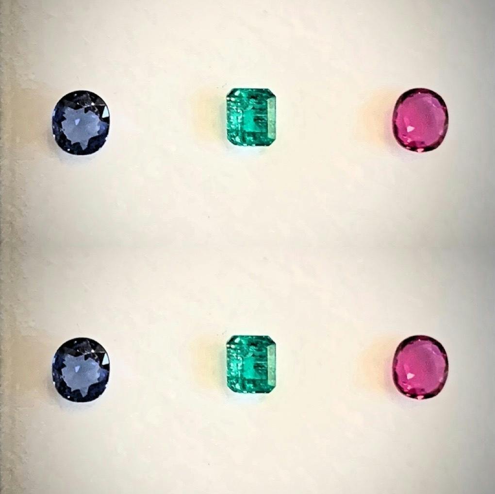 縦3㎝×横3㎝サイズのケースに、0.2ct前後の透明感のある天然ルビー・天然サファイア・天然エメラルドを各2個ずつ入れました☆ものによっては、0.3ct前後のものもあります。