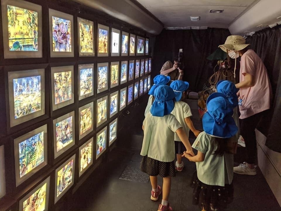 移動式個展会場『プペルバス』を約1年半運営してきて、病院・施設・幼稚園・保育園・小学校・中学校・高校・ショッピングモールなどいろんなところでプペルバス光る絵本展を開催してきました。