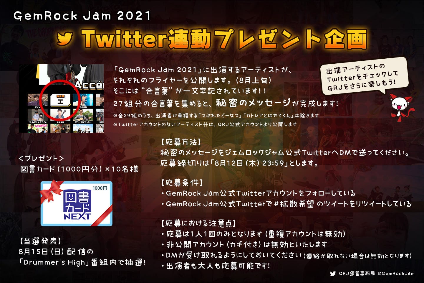 秘密のメッセージをジェムロックジャム公式TwitterへDMで送ってください。