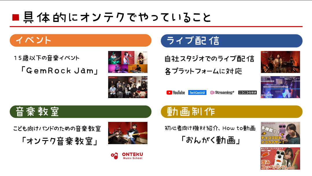 ONTEKUでは4つの事業それぞれに子どもたちが活躍しています