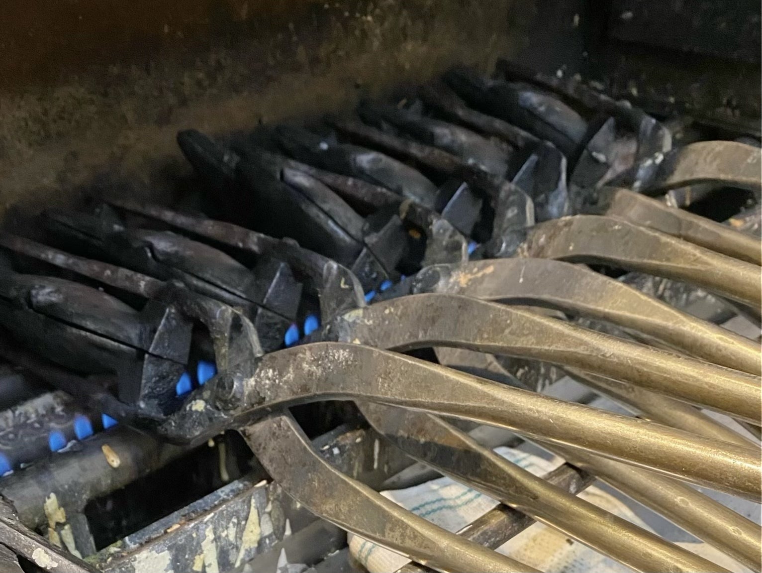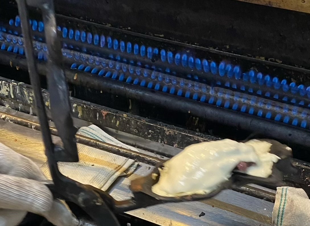ガチャガチャと音を立てながら一本で一匹ずつ焼く手焼きに心を込めて