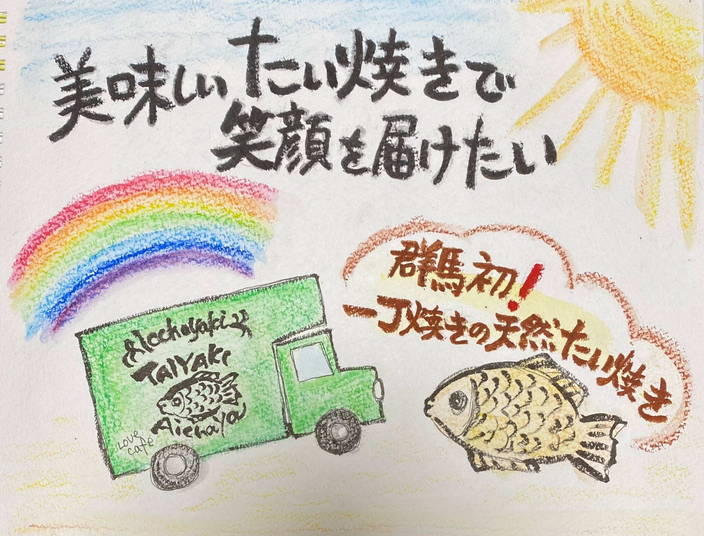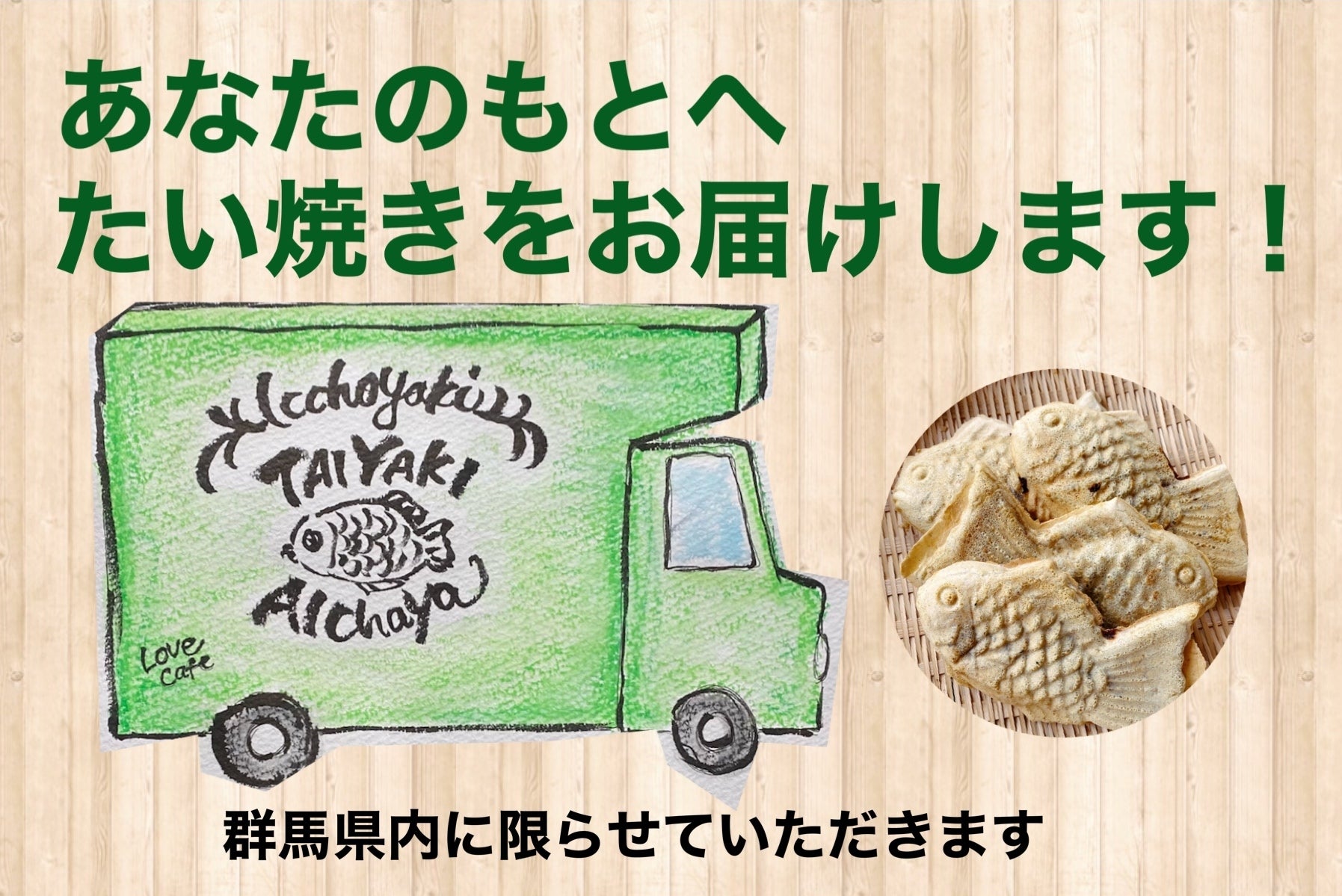 そして何よりも、天然たい焼きならではの焼きたての美味しさを地元群馬県のひとたに食べていただきたい。そして、まごころ込めて焼いたたい焼きを食べに群馬にたくさんの皆様に訪れてきてもらえるような『天然たい焼き 愛茶屋』を目指します。