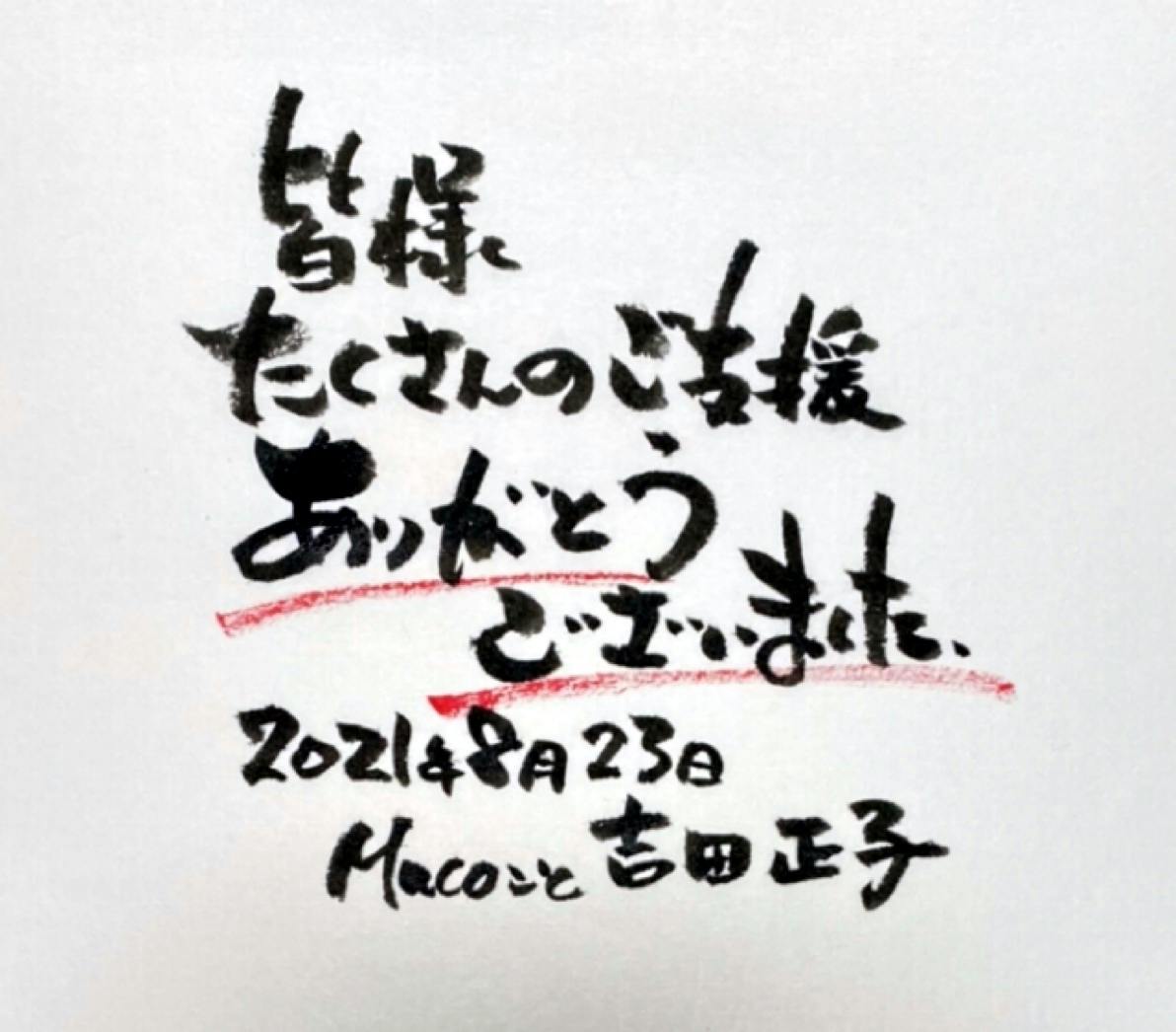 あらためまして、支援者様、応援してくださり陰で私を支えてくださった全ての皆様に心から感謝いたします。重ね重ね本当にありがとうございました!