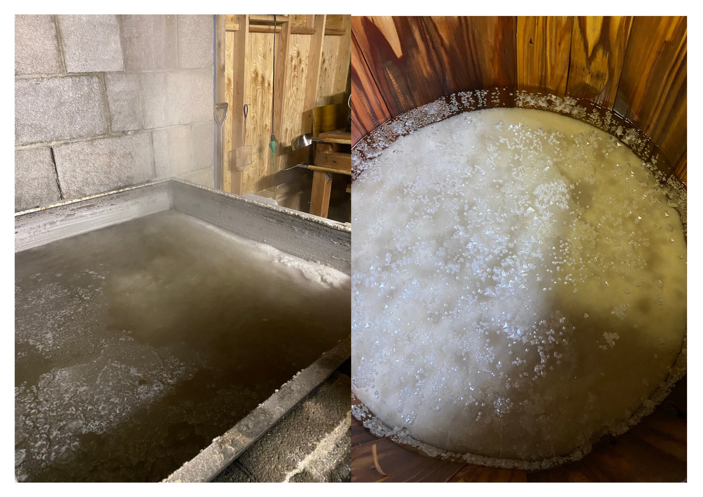 新年明けましておめでとうございます。12月19日の満月の夜から火入れを始めて3週間、ようやく本焚きができました。火で温めた釜に海水を注ぎ足しては水分を飛ばしてを繰り返し、塩分濃度をある程度高めた海水で釜が満たされたら、朝から1日かけて結晶化をさせていきます。釜が馴染むまでは思い通りの塩にはならないので、これを数回繰り返していき、ようやく皆さんへ届けられる塩ができると思います!わくわく。