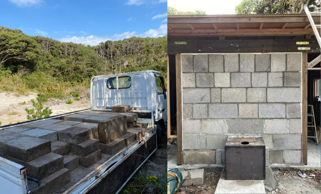 壁もあと少しで完成。新島ならではの塩工房になりそうです!