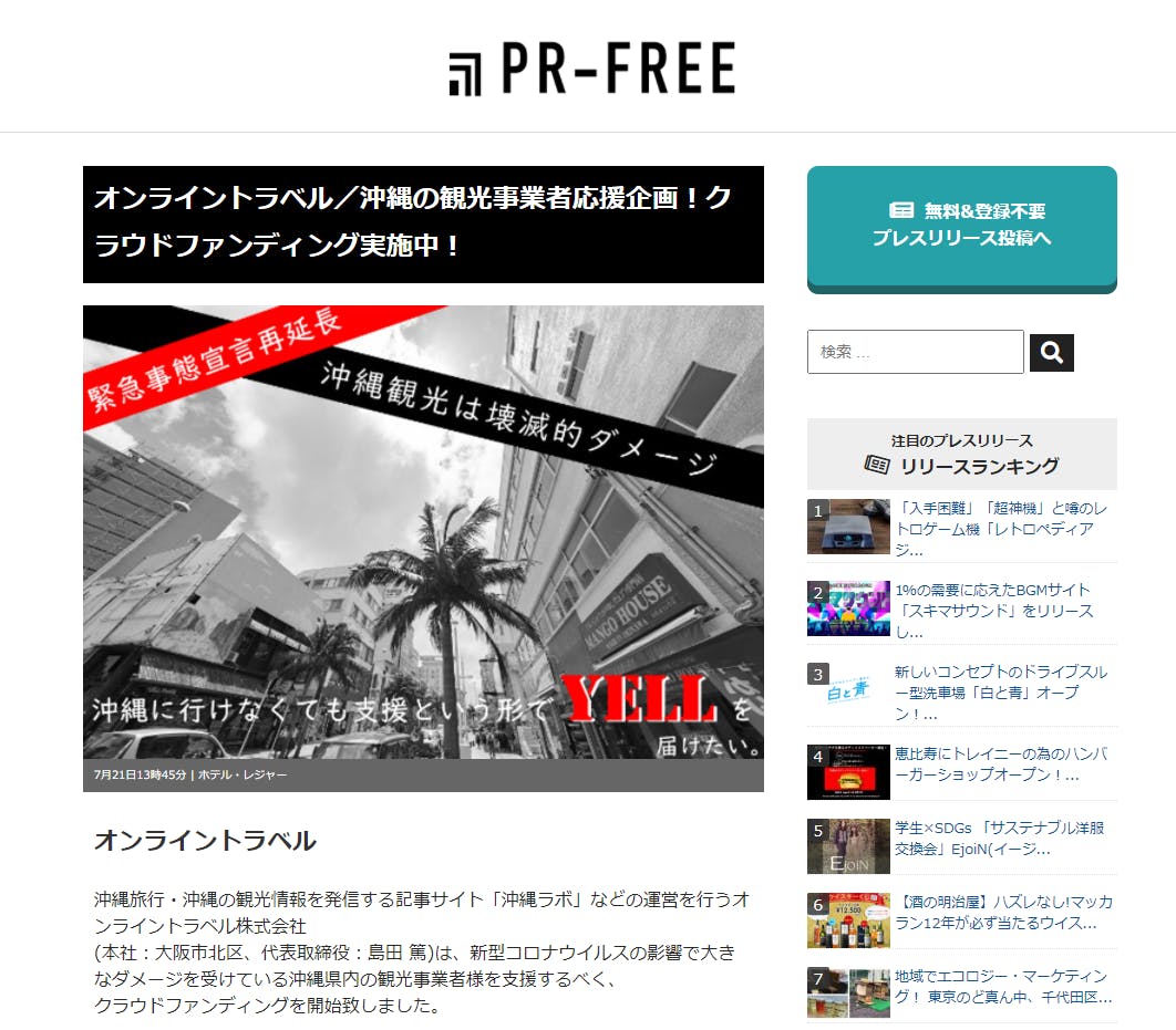 本日「PR-FREE」にて取り上げていただきました!
