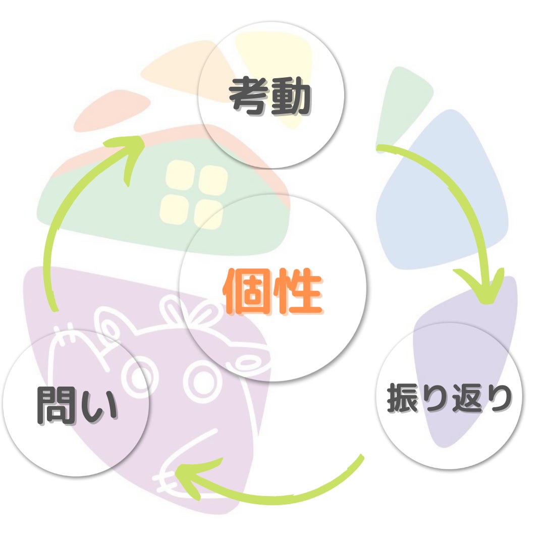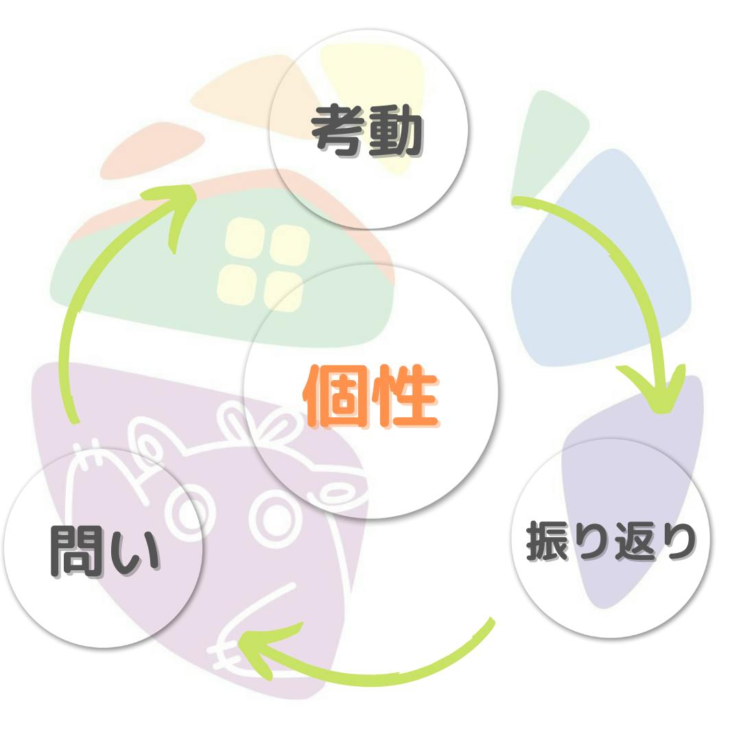 「問い(疑問、好奇心、興味)」→「考動(意見、行動)」→「振り返り(内省)」