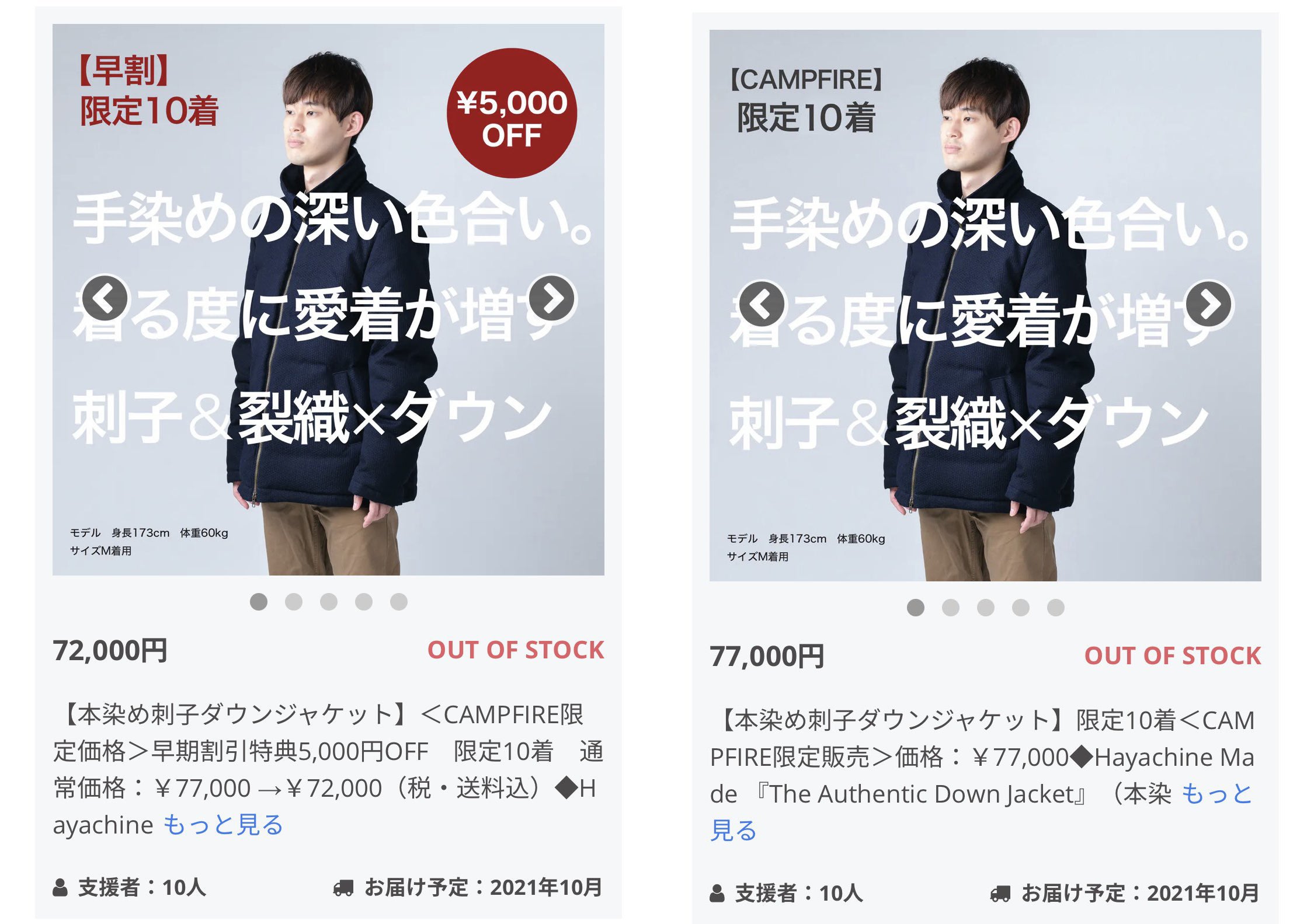 おかげさまで「本染め刺子ダウンジャケット」20着全てSOLD OUTとなりました。