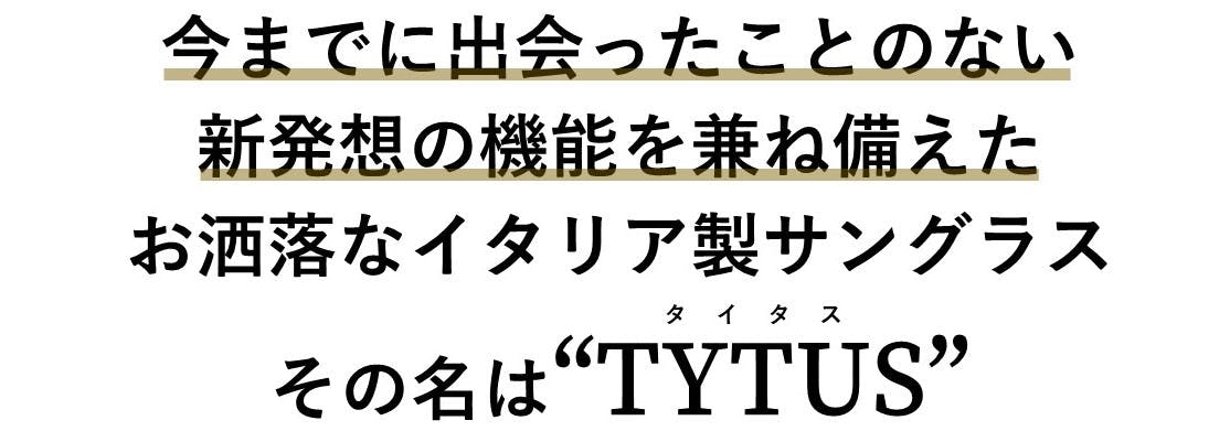 「TYTUS」シリーズの中から、日本人の顔になじみやすい、お使いいただきやすいサングラスを厳選して、7種類のラインナップをご用意しました。どの種類も「デザイン性」と「機能性」どちらも兼ね備えた、他にはないサングラスです!きっと、お気に入りのサングラスが見つかると思います♪