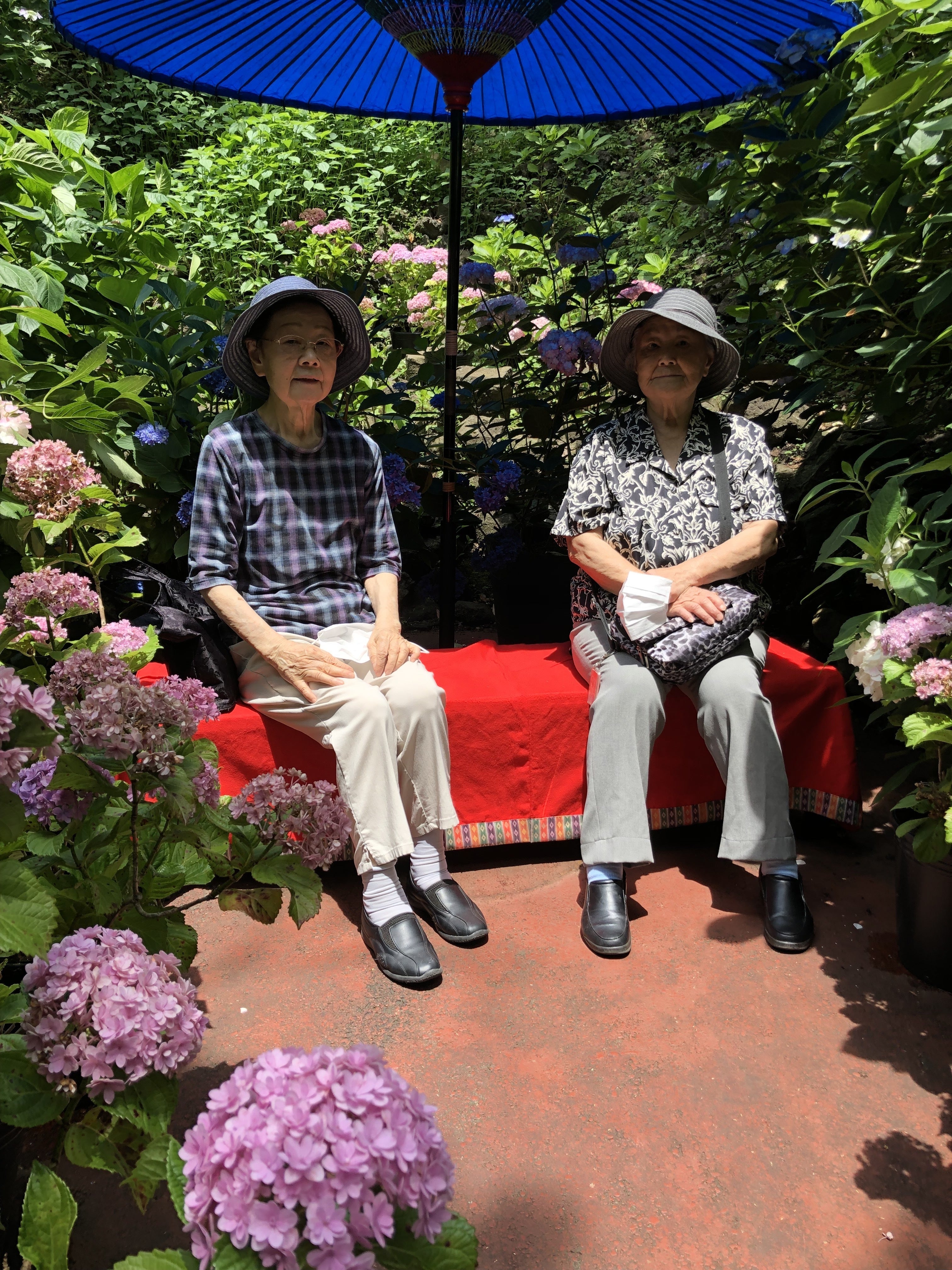 (↓叔母姉妹をアジサイ苑へ連れて行きました)