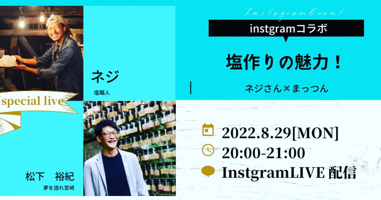 リターンのコラボをしていただいている、『塩職人 ネジ』さんとインスタライブしますっ!!