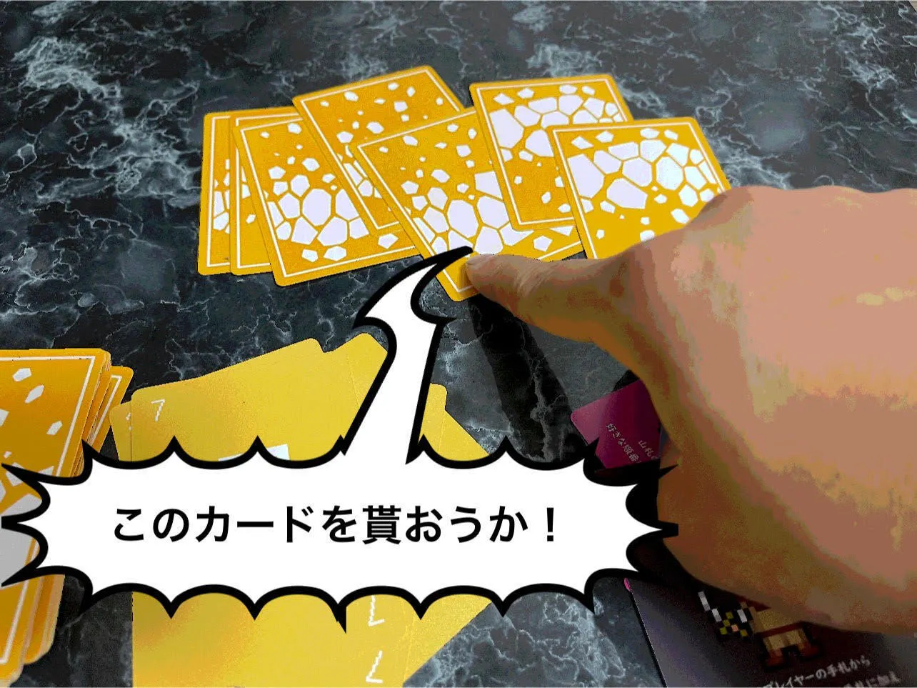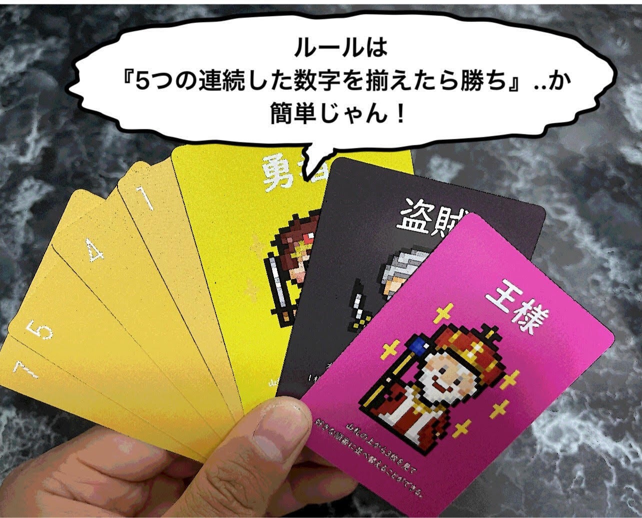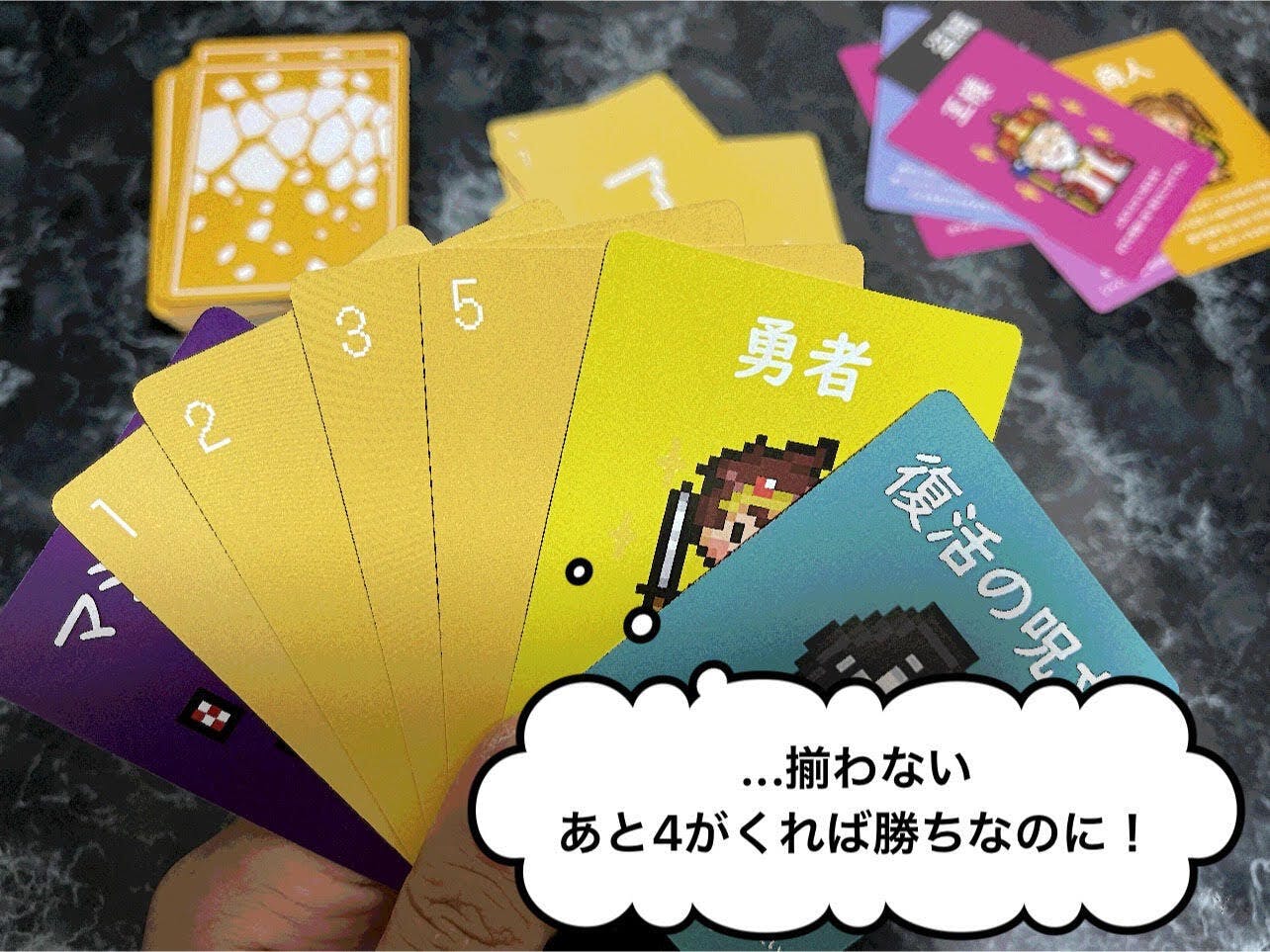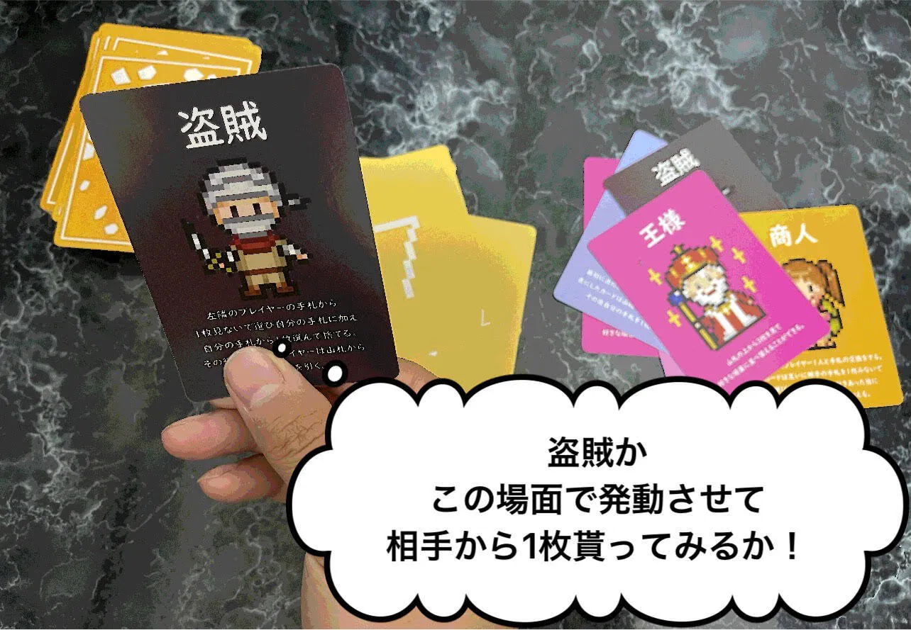 手札が7枚までの制約があるため「数字を優先して揃えるのか、特殊カードを集めて一気に勝負を決めるのか」選択1つで勝敗が揺れることも…運要素とプレイング要素を絶妙に絡めておりますのでお楽しみ頂けるかと思います!