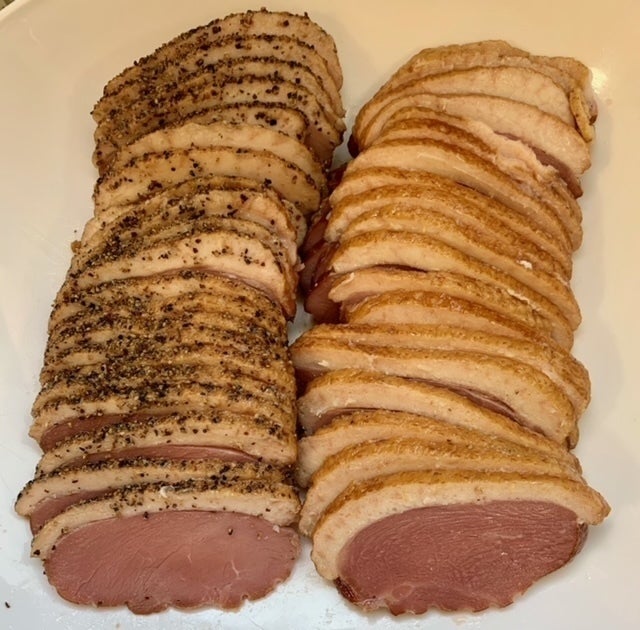 合鴨ローススモーク(燻製)パストラミ(黒胡椒付き)スライス済