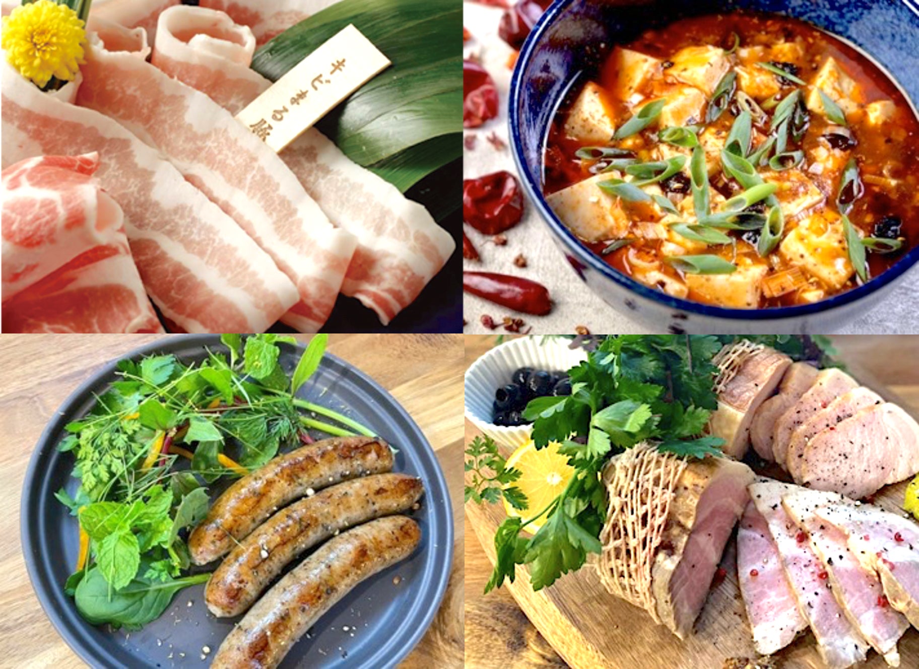 そのほか、キビまる豚のミンチを使った、漢源花椒が香る自家製麻婆「激辛四川麻婆豆腐」など、キビまる豚の奥深い味わいが引き立つ人気メニューです。