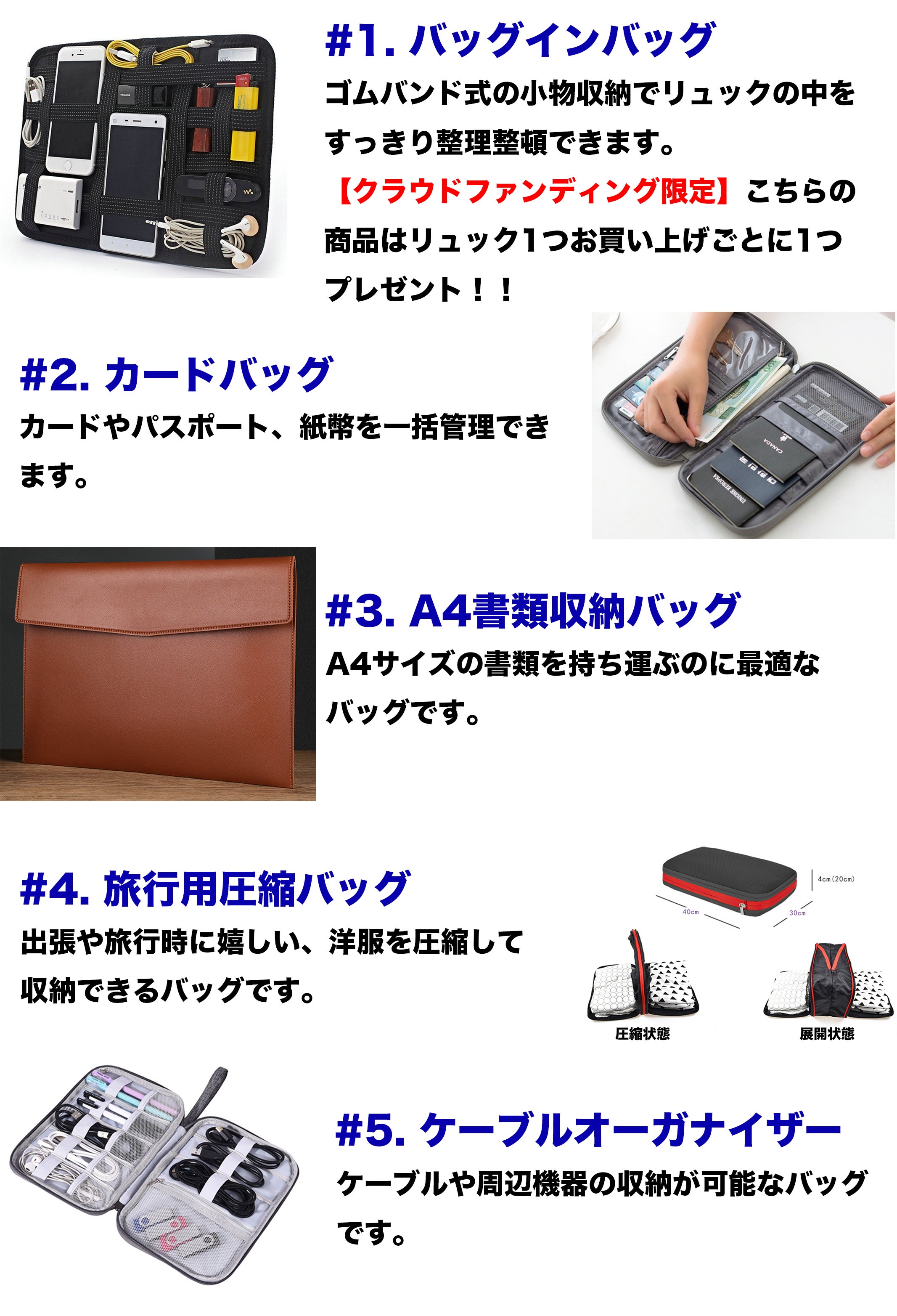 ■ビジネスに特化した5つの追加バッグにより収納性と機能性アップ。